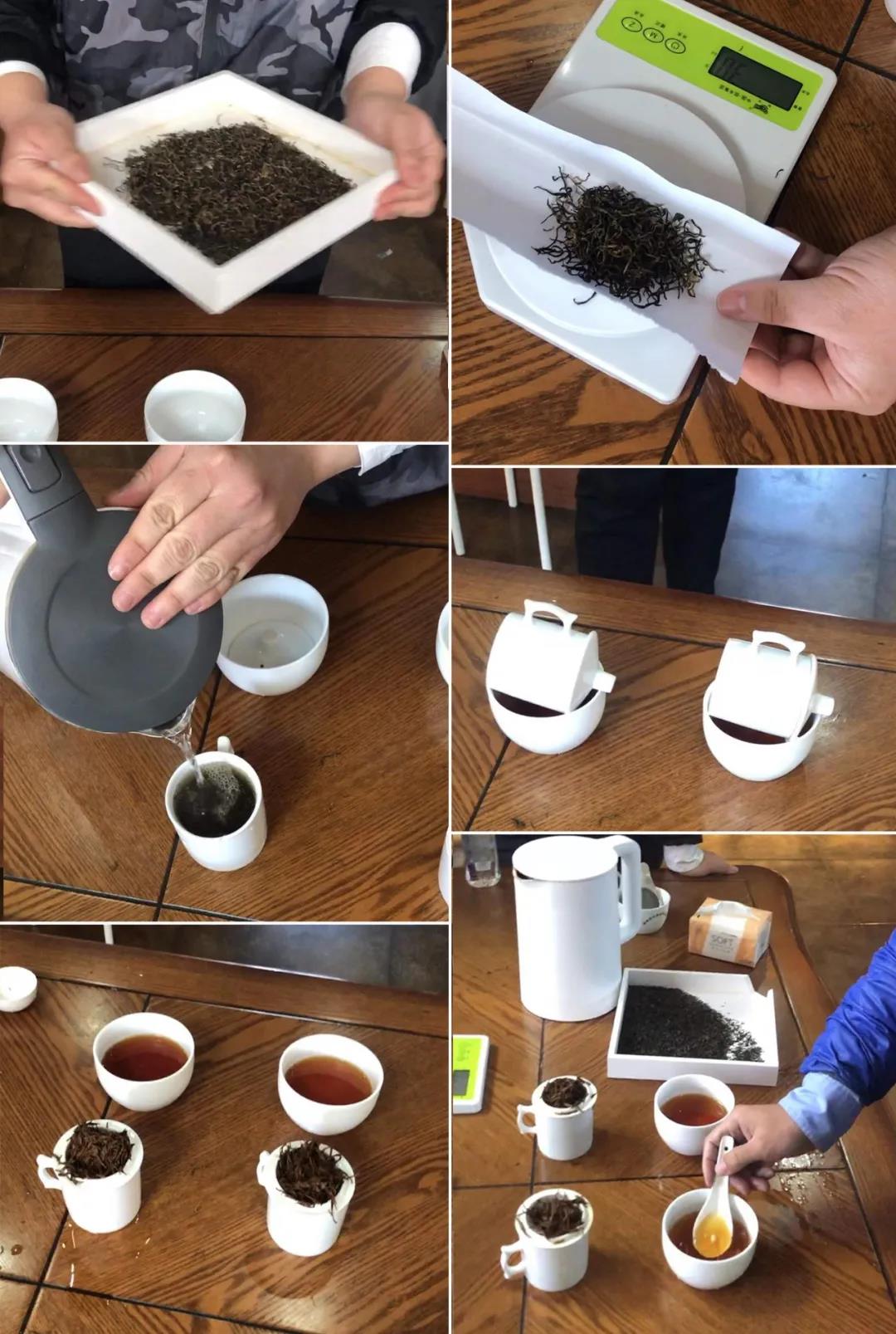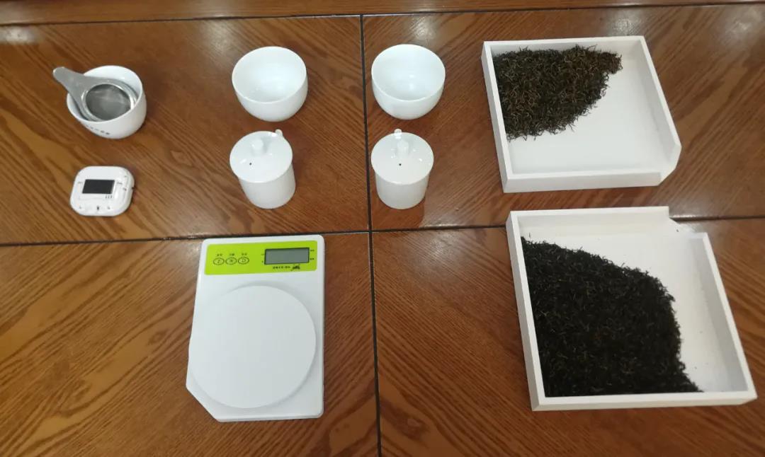 第三个环节为茶叶审评,2人小组,1人按茶叶审评操作规范进行冲泡,由主持人随机打乱后,另一人将冲泡好的茶汤、叶底、干茶一一对应;最后按照是否对应及操作规范度分别计算得分。在该环节,所有小组均正确将茶汤、叶底、干茶一一对应。