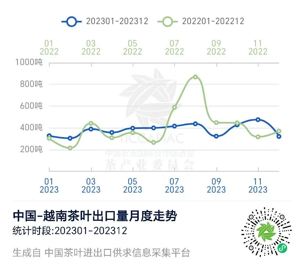 在“中国茶叶进出口供求信息采集平台”上,我们可以查询到2023年1-12月中国与斯里兰卡的茶叶进出口贸易数据。