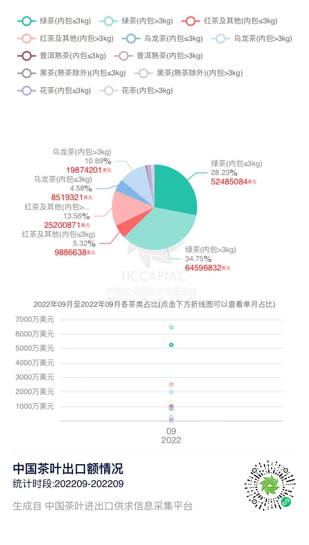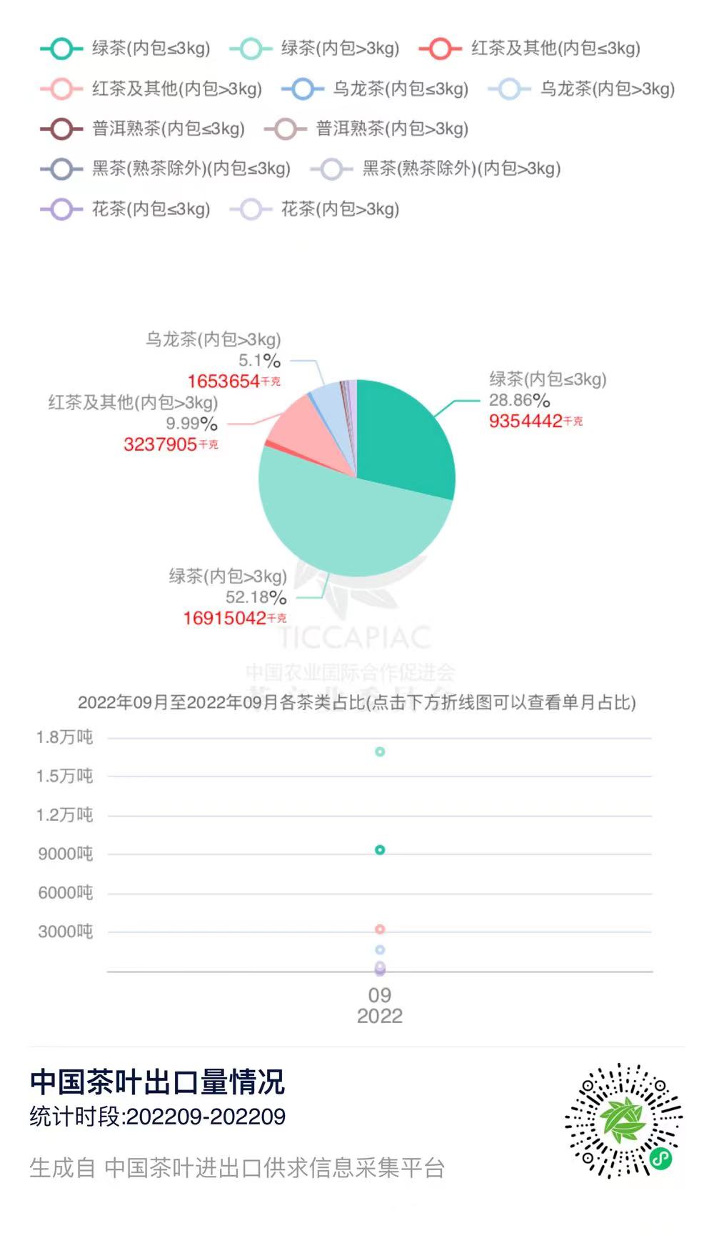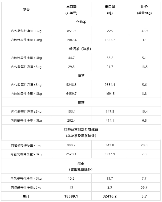 2022年9月中国茶叶分茶类出口数据