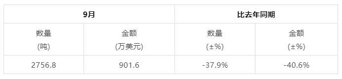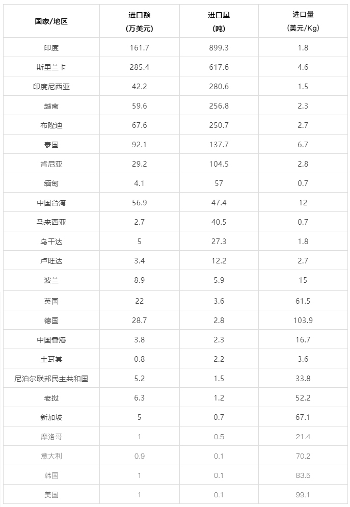 2022年9月中国茶叶进口量、额统计表