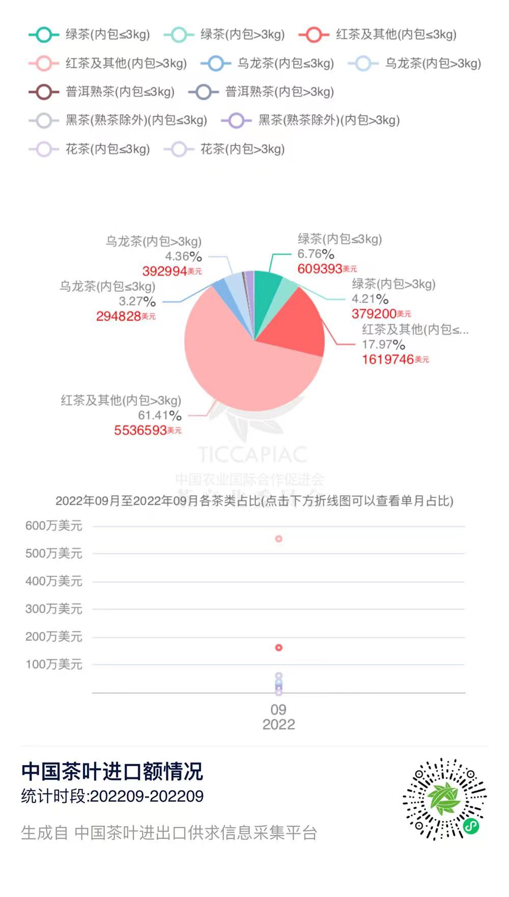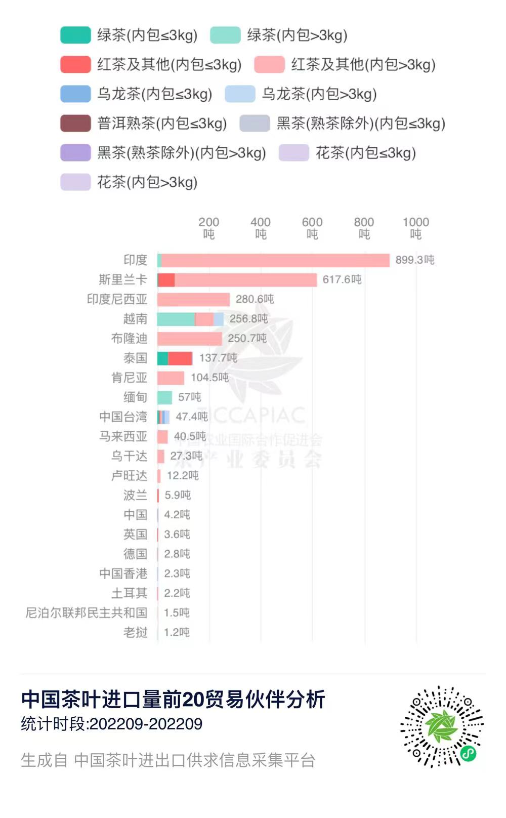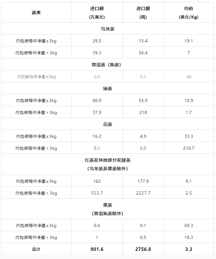 2022年9月中国茶叶分茶类进口数据