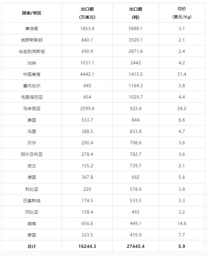 2022年9月中国茶叶主要外销国家/地区