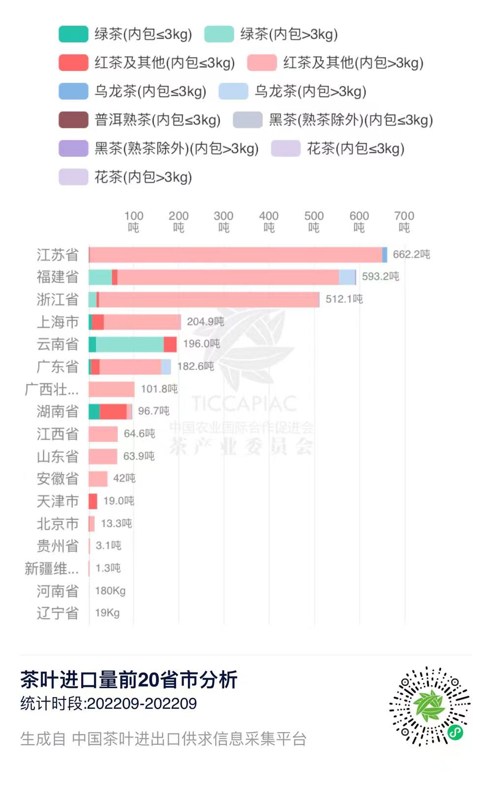 2022年9月中国茶叶进口量前20省市