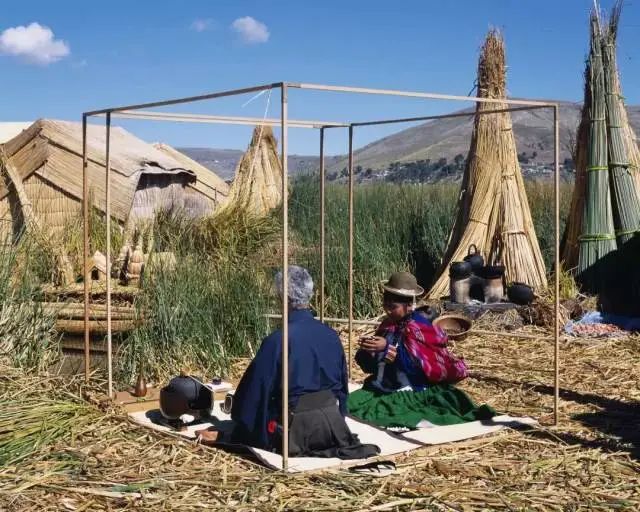 在秘鲁的的喀喀湖的浮岛乌罗什岛感受自然的呼唤。