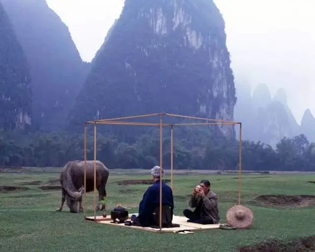 下图是在广西桂林的兴坪,塞内尔与放牛的大爷共度一小段时光。自然风光与茶道完美地融为一体。