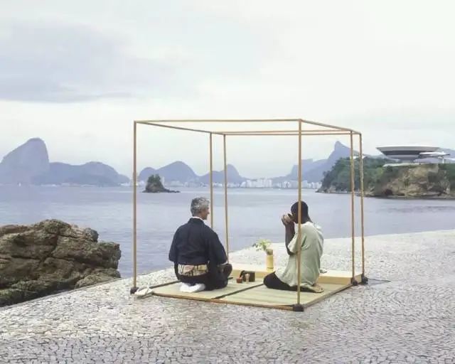 塞内尔带着自己的茶室,去了世界各地,邀请了路过的陌生人共饮、比如,巴西里约热内卢的贫民窟,赤裸上身的男孩小心翼翼地拿茶杯。