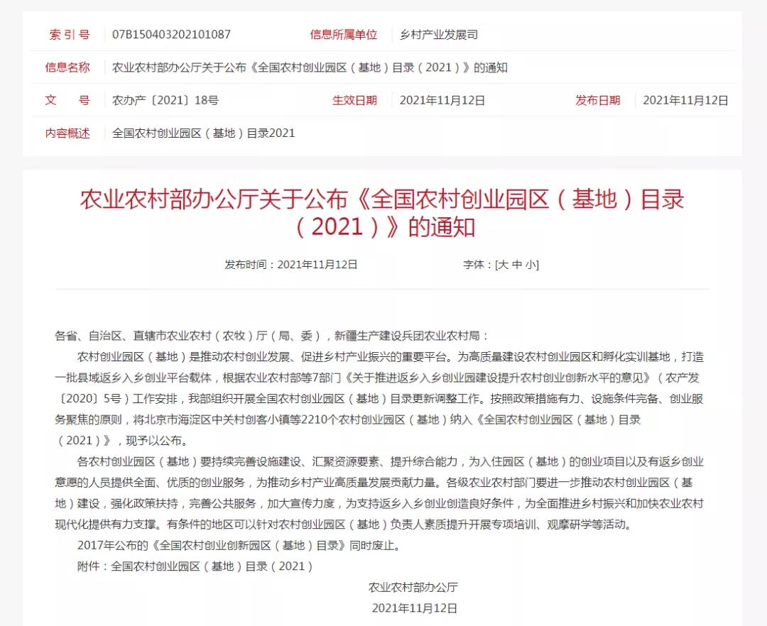 农村创业园区(基地)是推动农村创业发展、促进乡村产业振兴的重要平台。