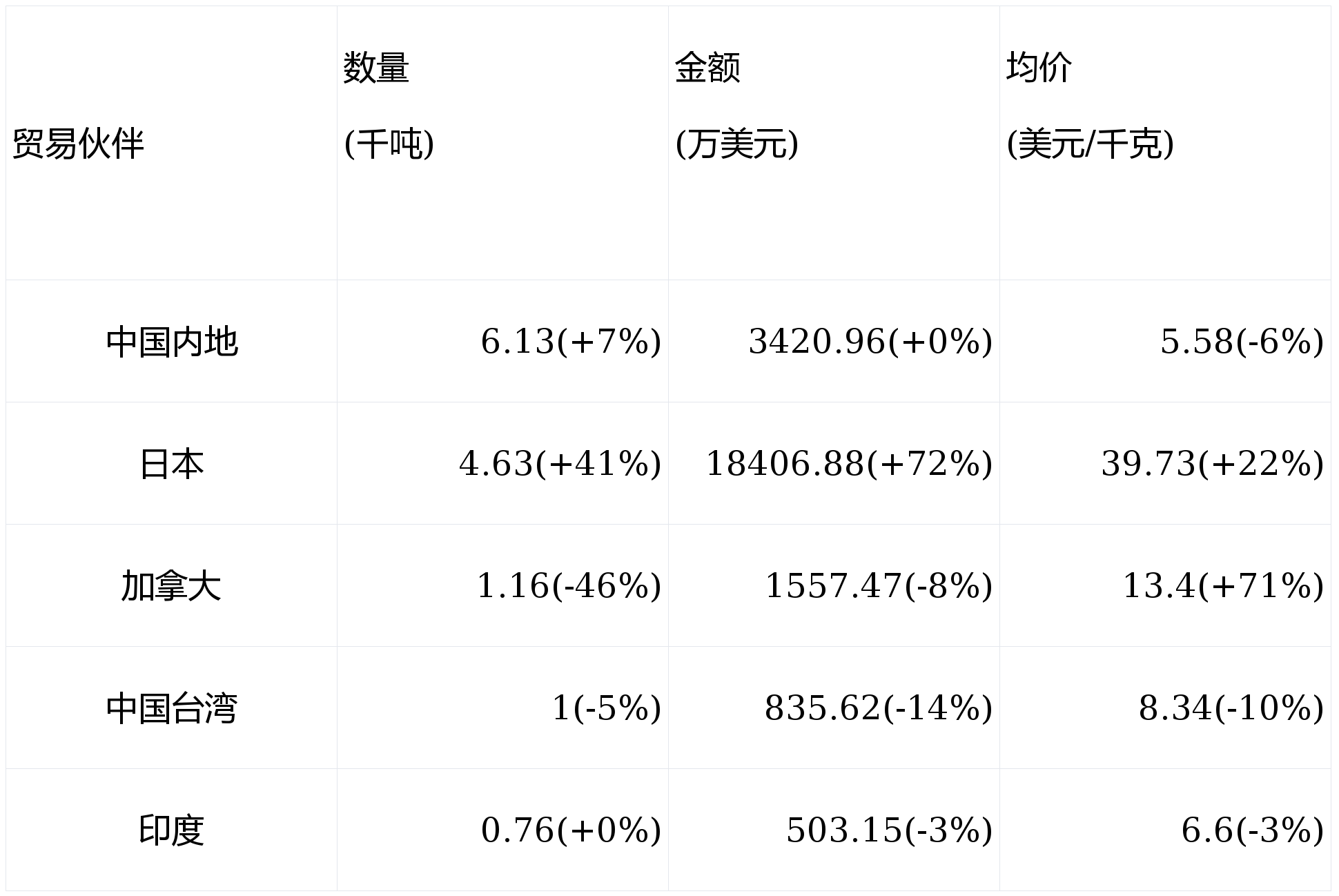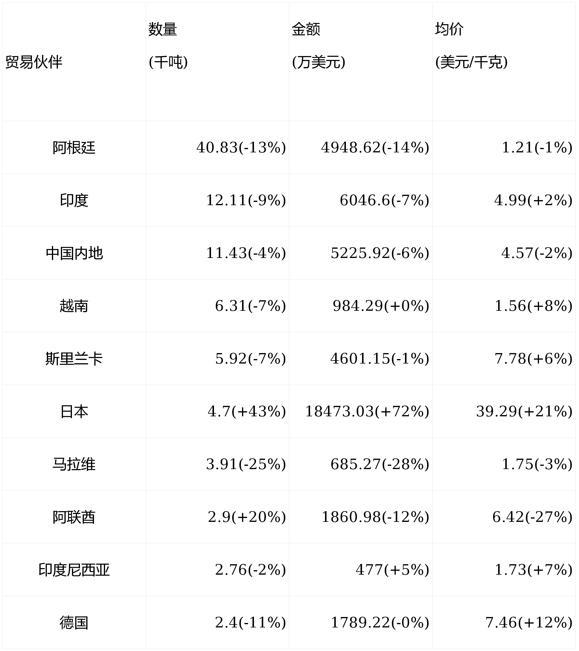 2.进口贸易伙伴:量价表现显著分化,日本凭抹茶一骑绝尘