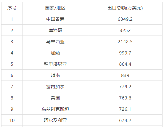 2021年11月中国茶叶主要外销国家/地区
