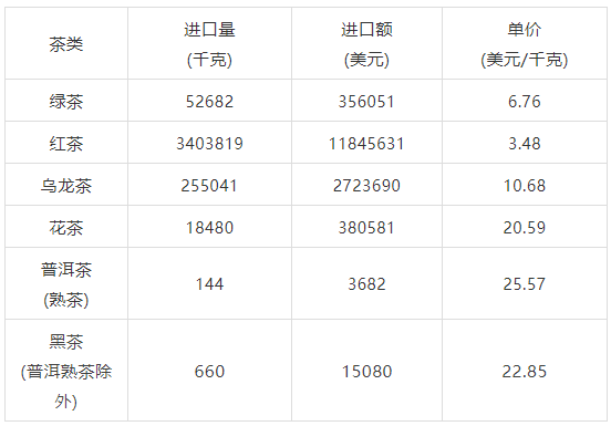 2021年11月中国茶叶分茶类进口数据