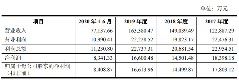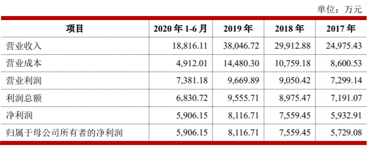 2017年至2020年6月,澜沧古茶实现营业收入分别为2.5亿元、2.99亿元、3.8亿元、1.88亿元;同期实现归属于母公司所有者的净利润分别为5729.08万元、7559.45万元、8116.71万元、5906.15万元。