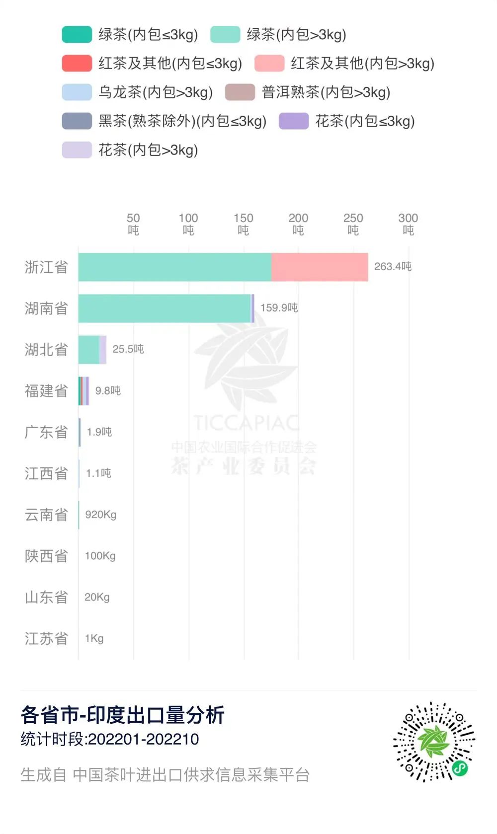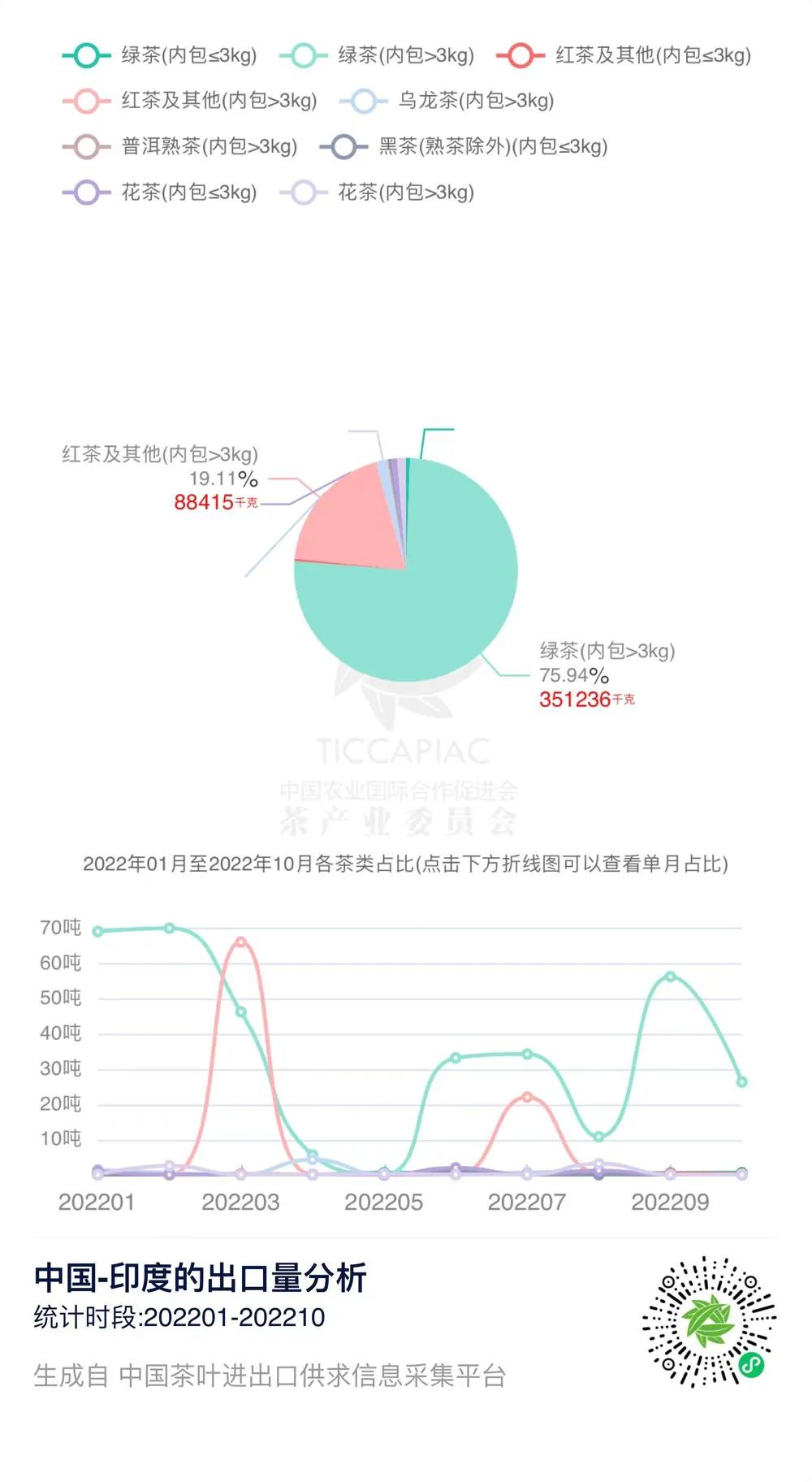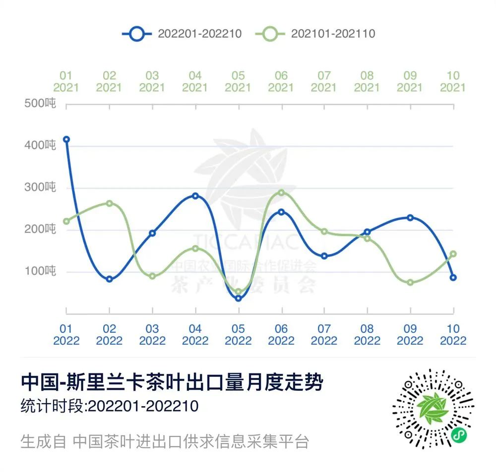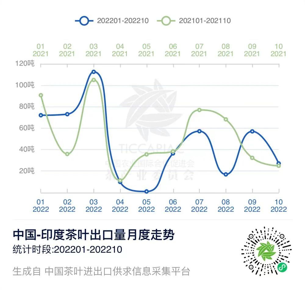 在“中国茶叶进出口供求信息采集平台”上,我们可以查询到2022年1-10月中国与印度、斯里兰卡的茶叶进出口贸易数据。