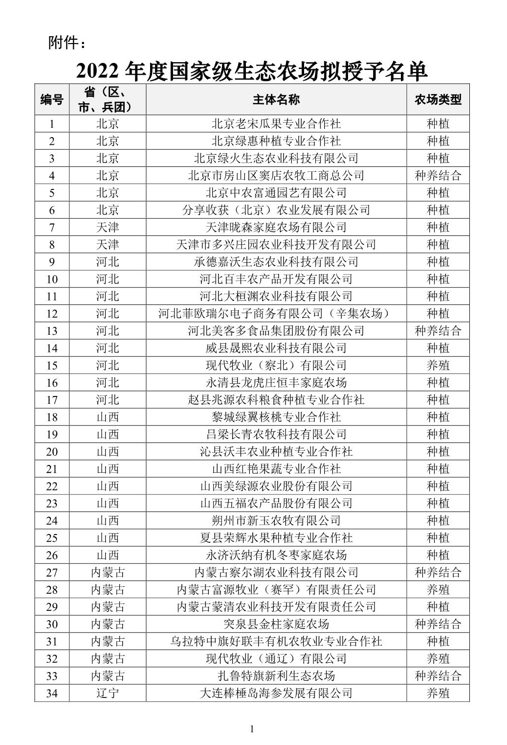 附件:2022年度国家级生态农场拟授予名单