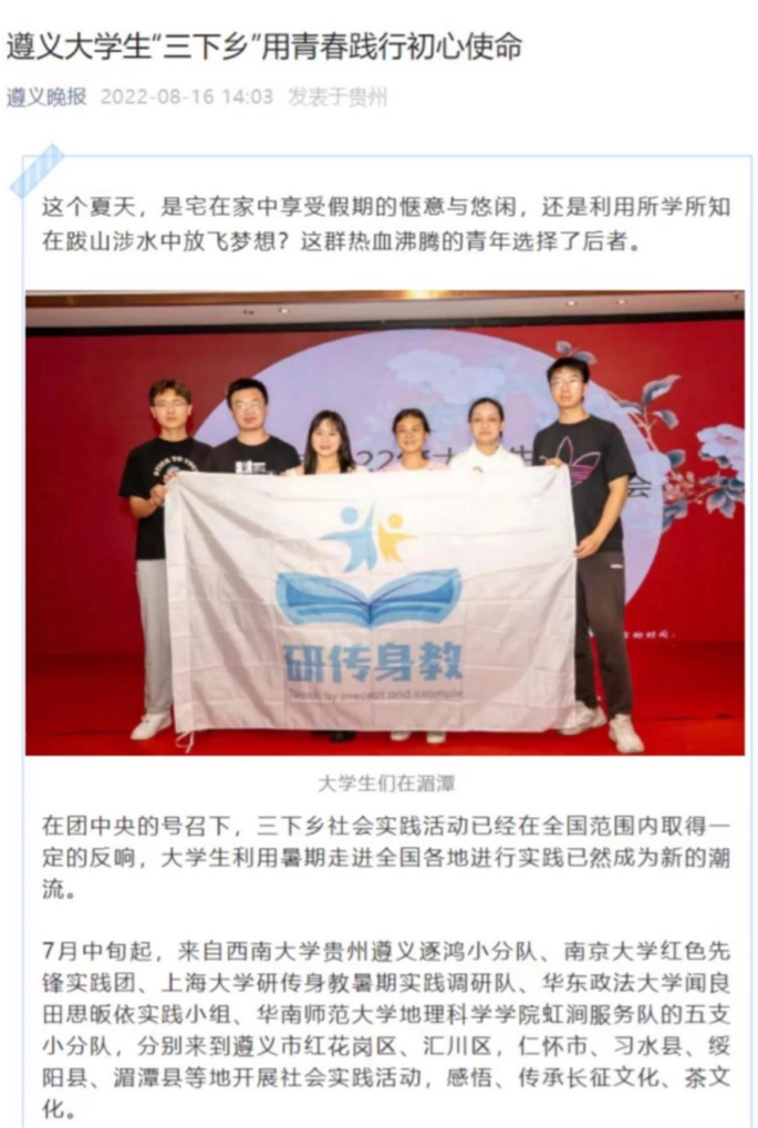 图17:遵义晚报在“三下乡”分享会报道中有关我队部分