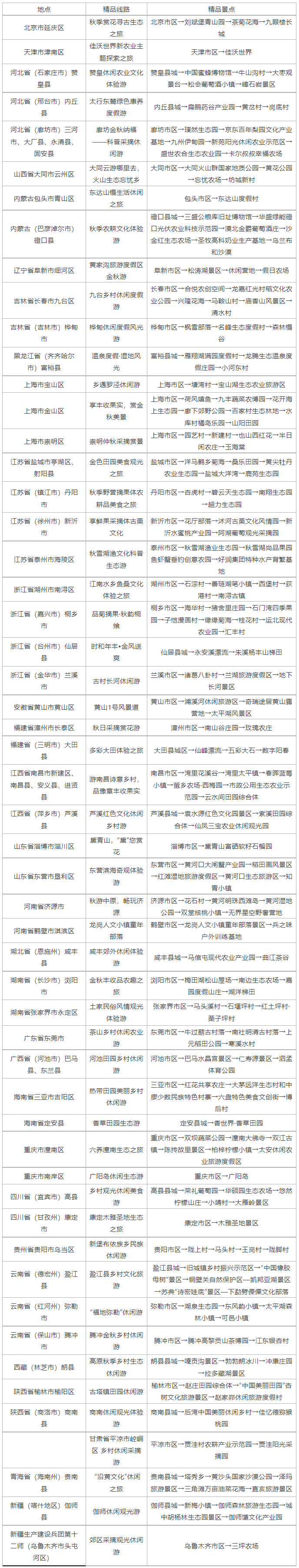 2022中国美丽乡村休闲旅游行(秋季)精品景点线路推介名单