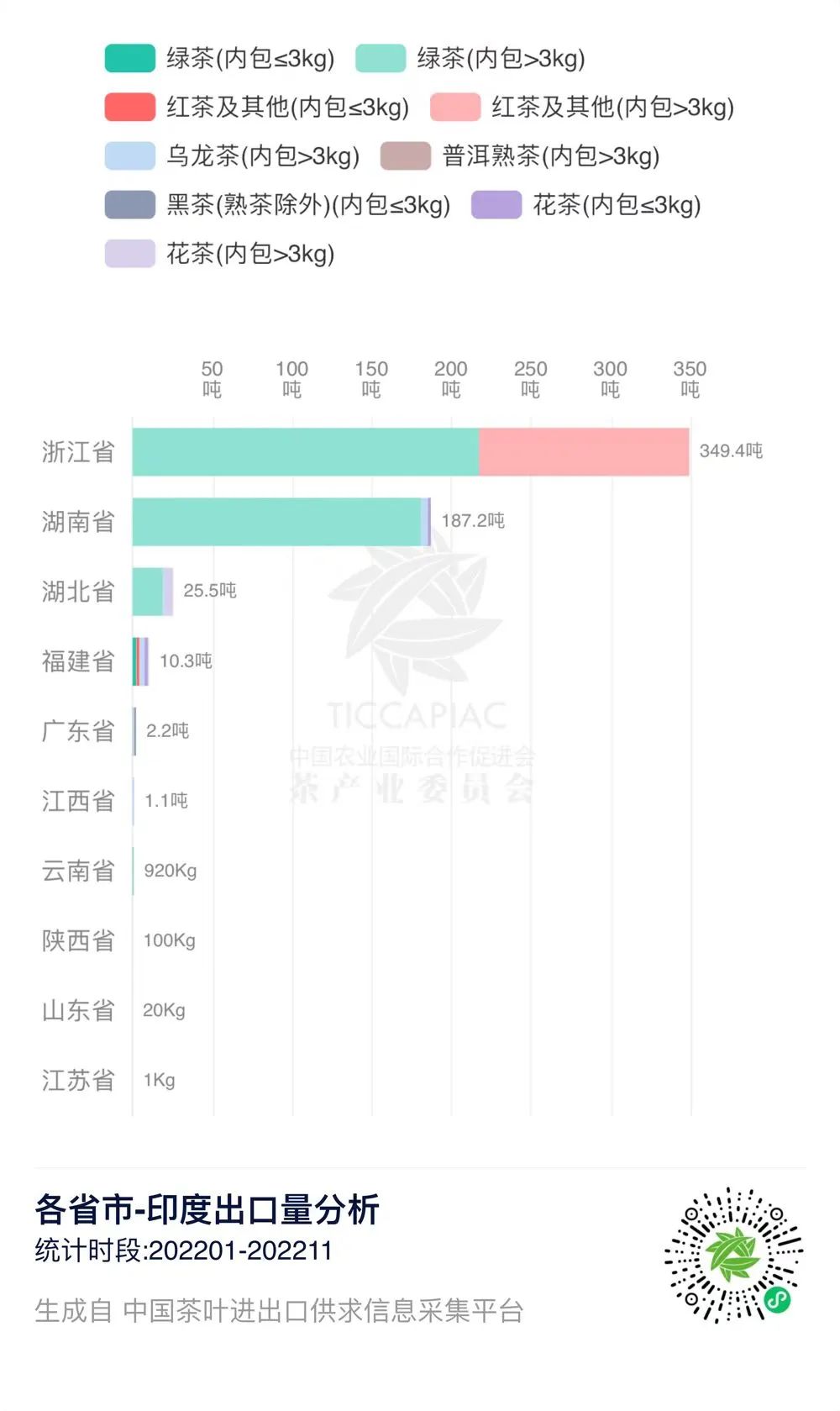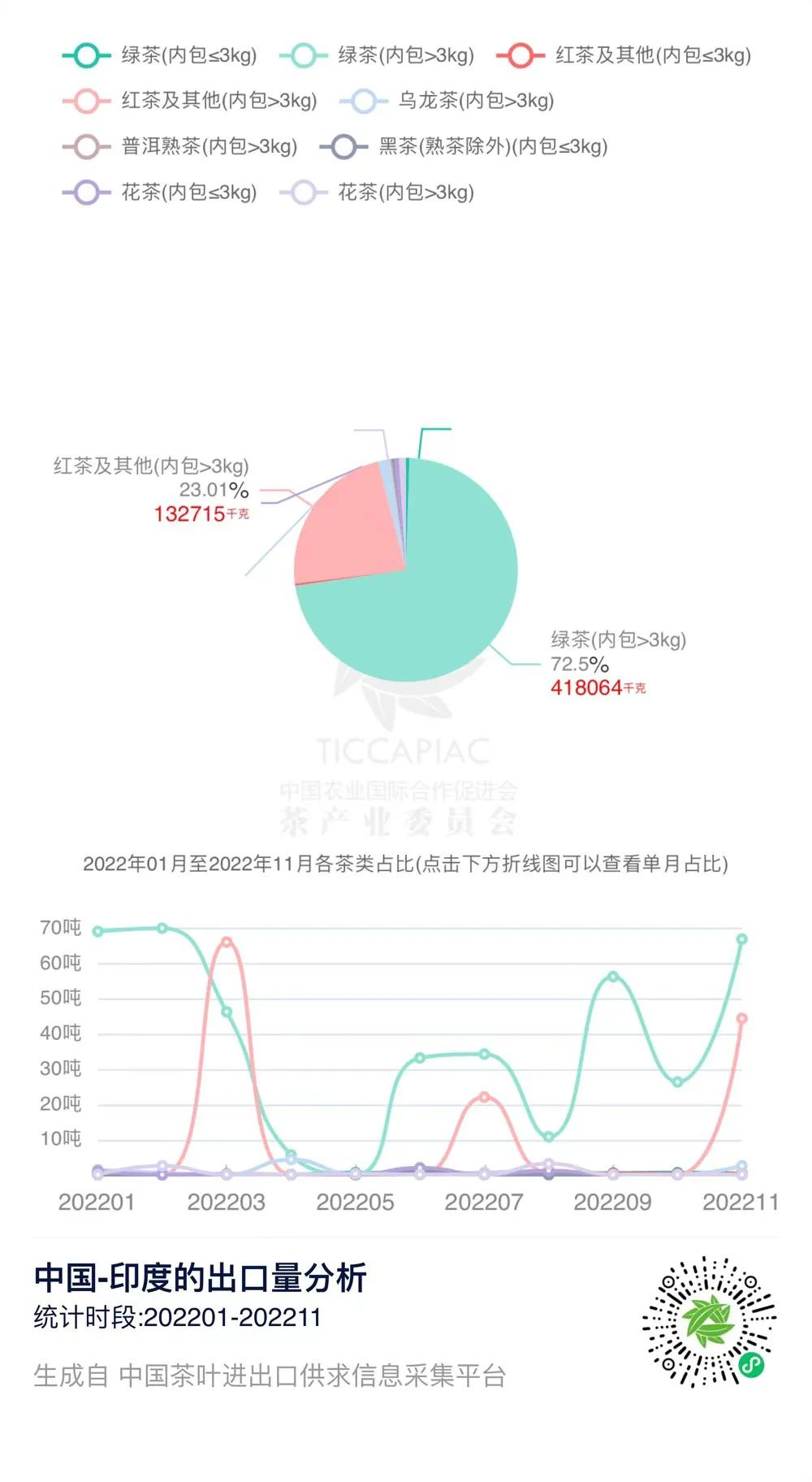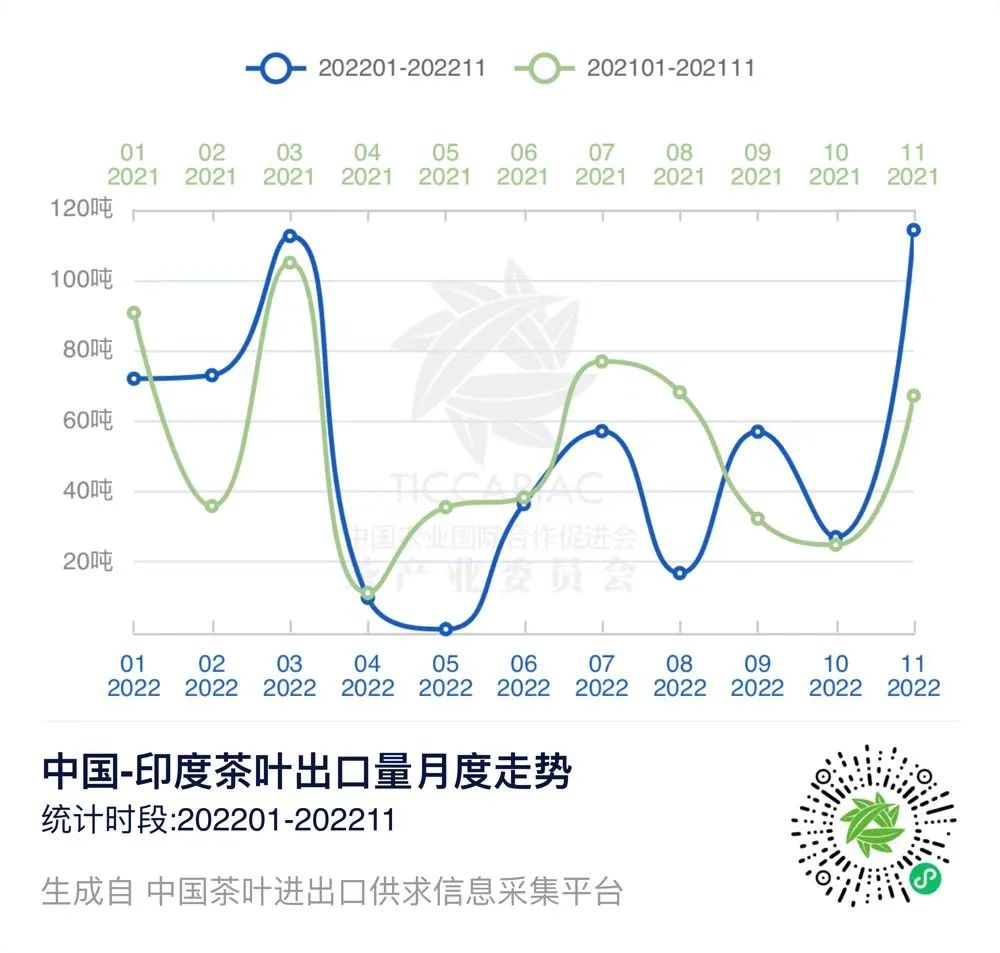 在“中国茶叶进出口供求信息采集平台”上,我们可以查询到2022年1-11月中国与印度的茶叶进出口贸易数据。