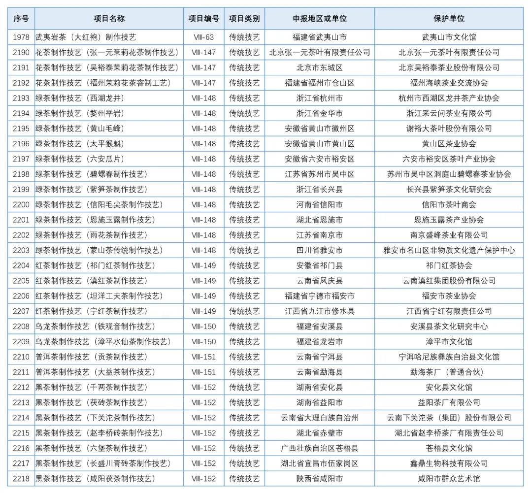 30个茶非遗项目保护单位入选!文化和旅游部公布国家级非物质文化遗产代表性项目保护单位名单