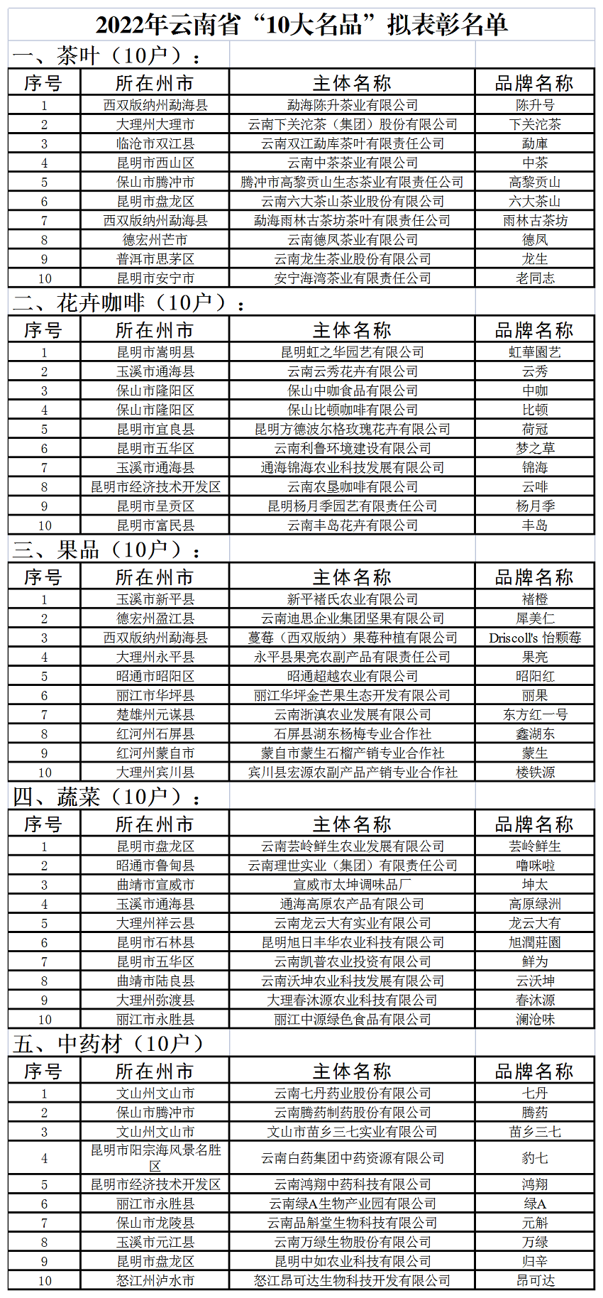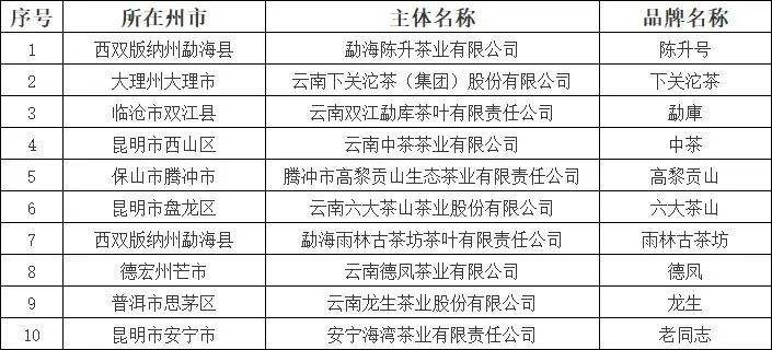 10茶企上榜!2022年云南省“10大名品”“10强企业”“20佳创新企业”拟表彰名单公示中