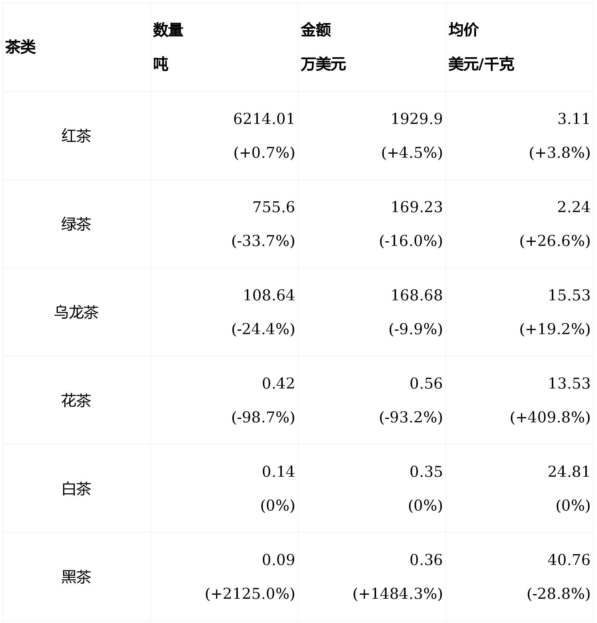 注:数据来源于中国海关,由中国农业国际合作促进会茶产业分会整理发布,转载请注明。