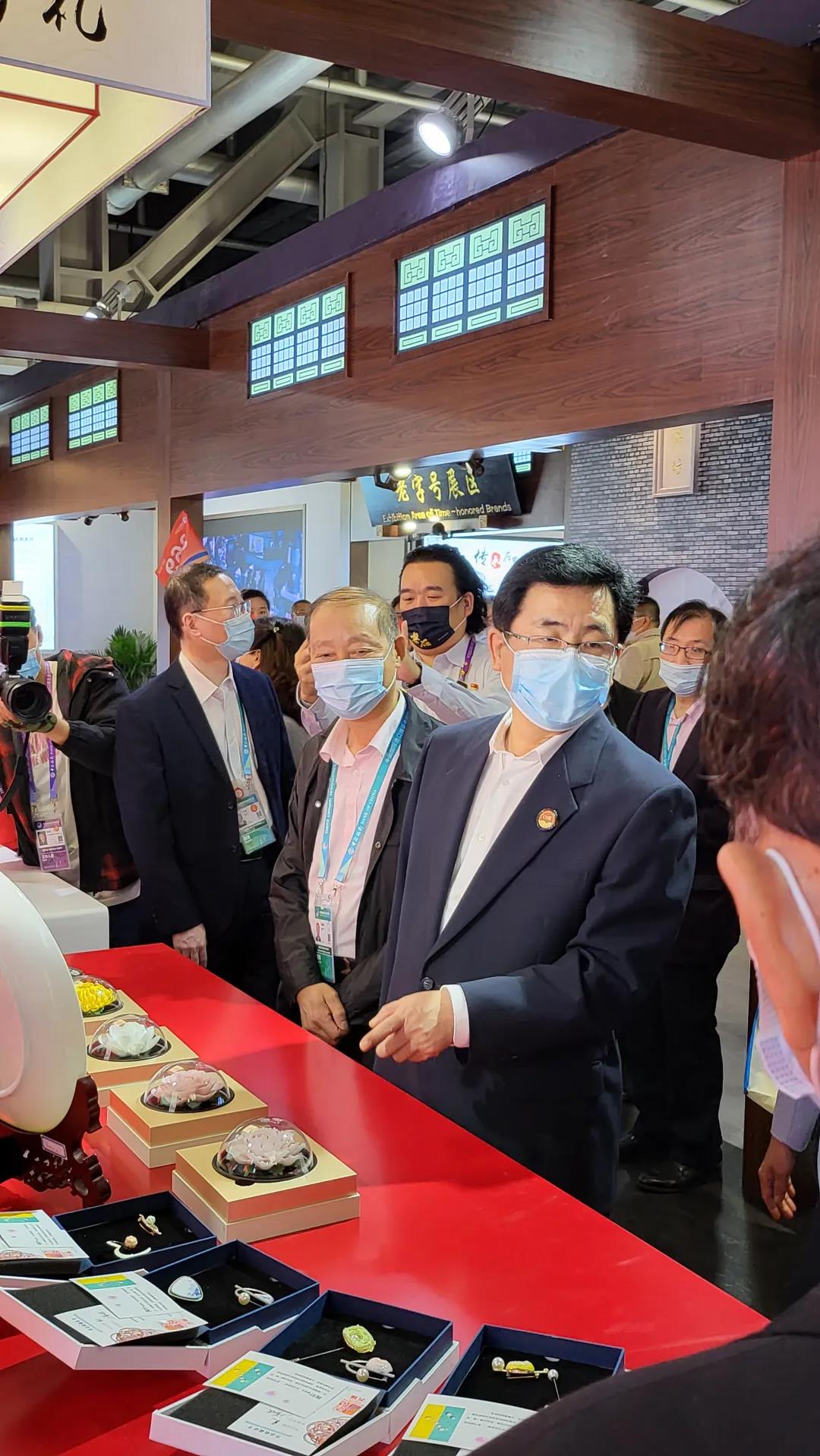 福建省省委副书记、代省长赵龙,福建省省委常委、副省长郭宁宁带领相关领导巡视福建馆,商务厅厅长吴南翔陪同巡展。
