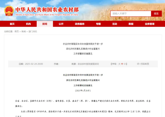 为深入贯彻落实《中共中央、国务院关于进一步深化农村改革扎实推进乡村全面振兴的意见》精神,扎实做好2025年“三农”工作,现提出以下意见。