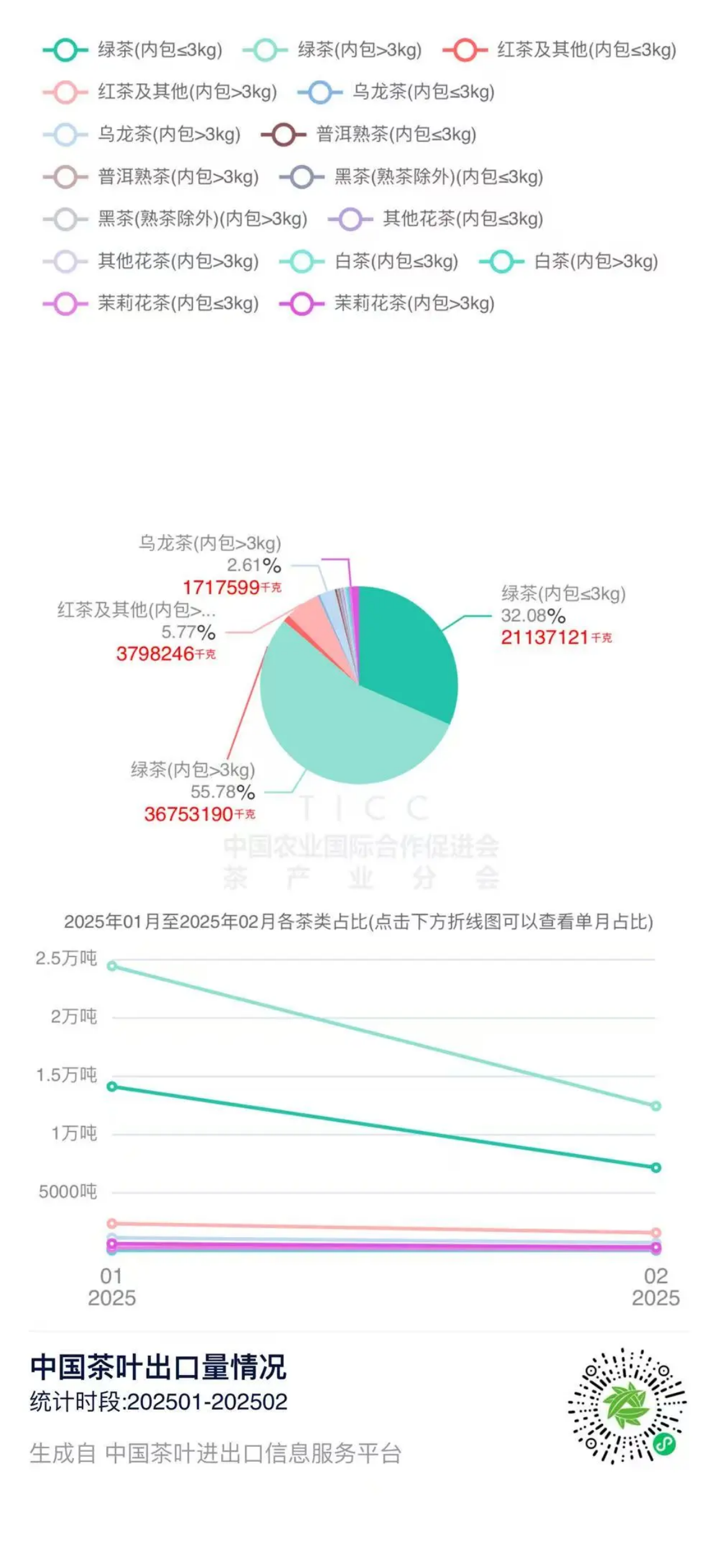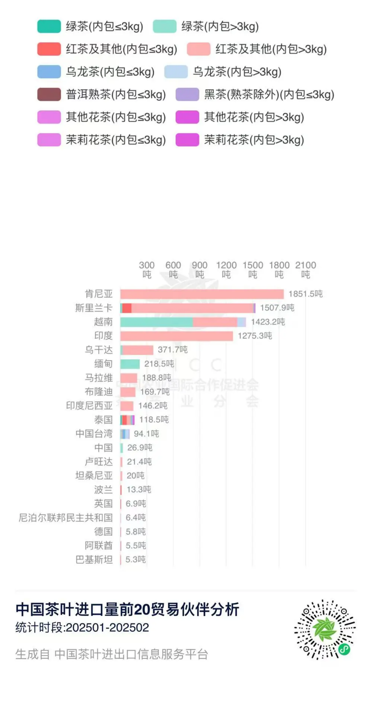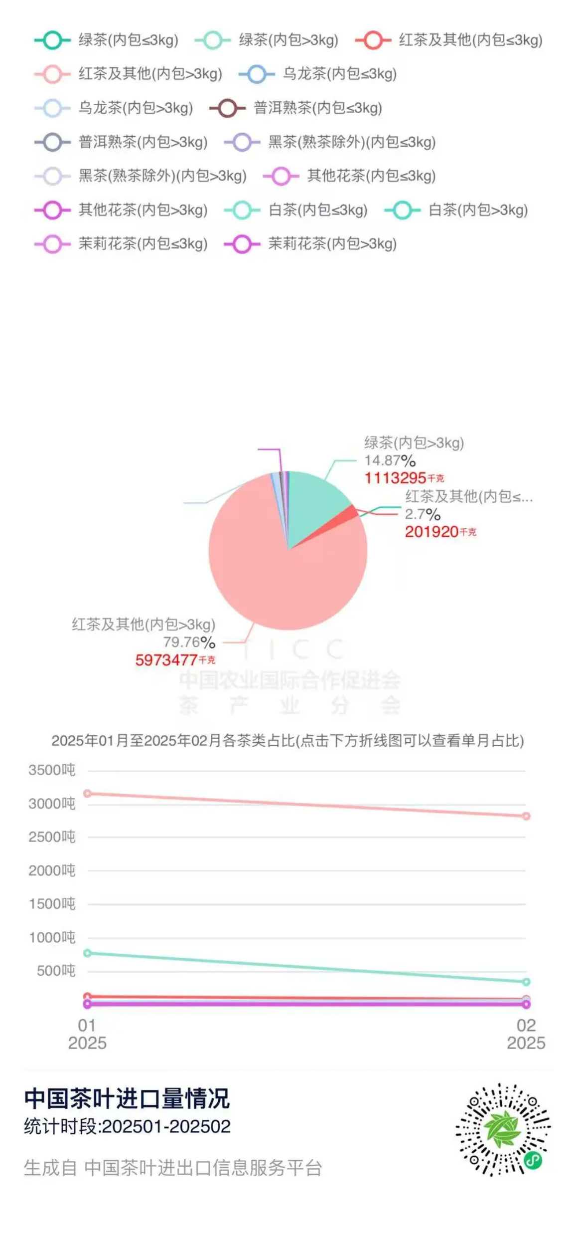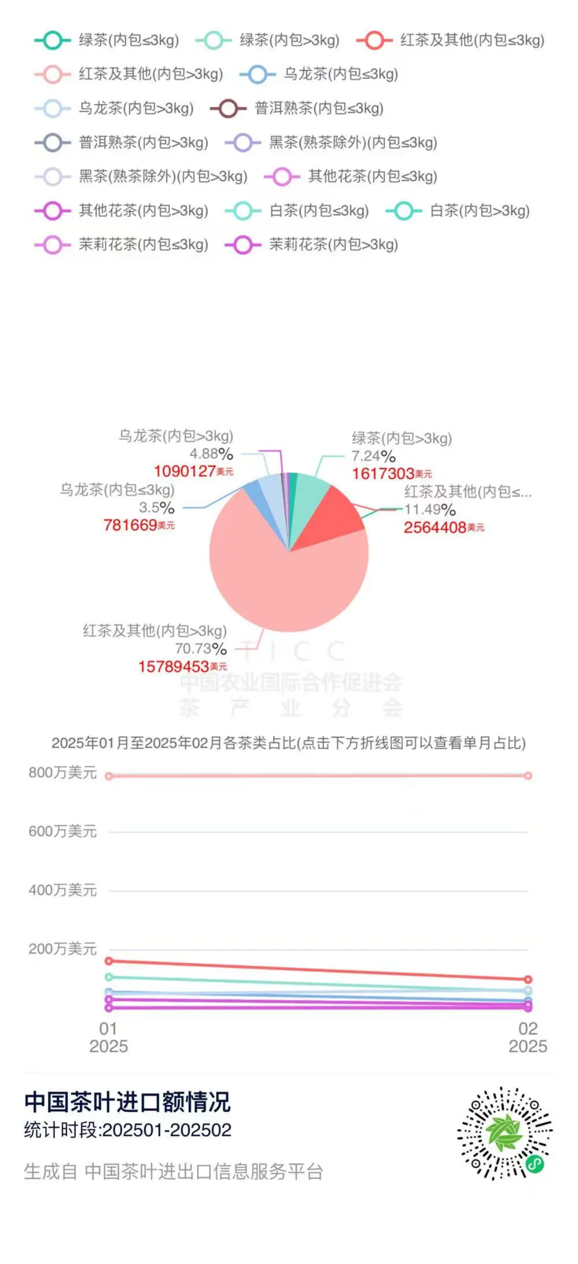注:2025年1-2月中国茶叶进出口数据由中国农业国际合作促进会茶产业分会整理发布,转载请标明出处。