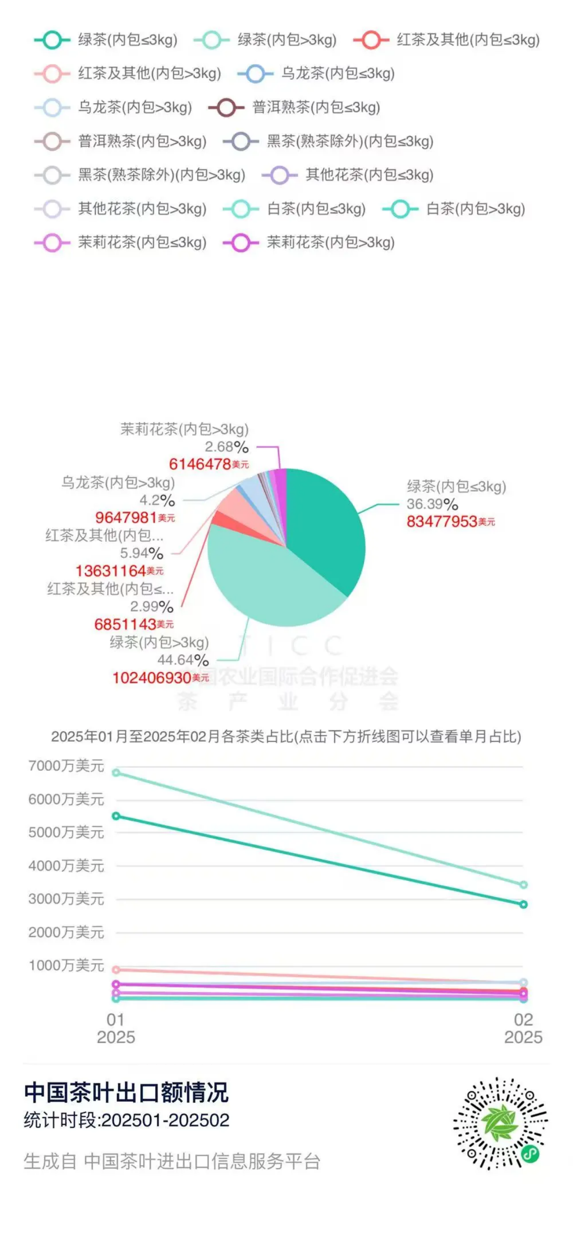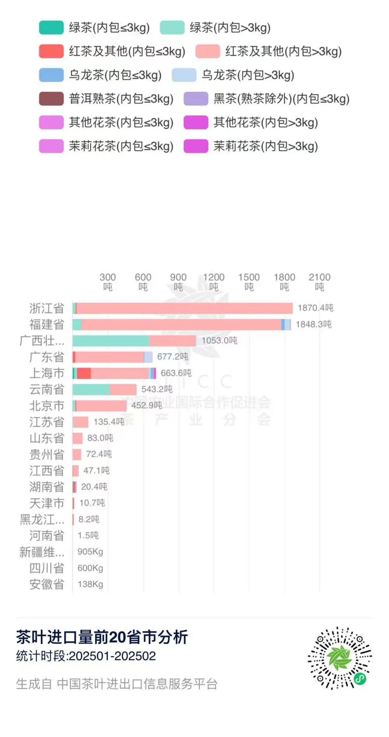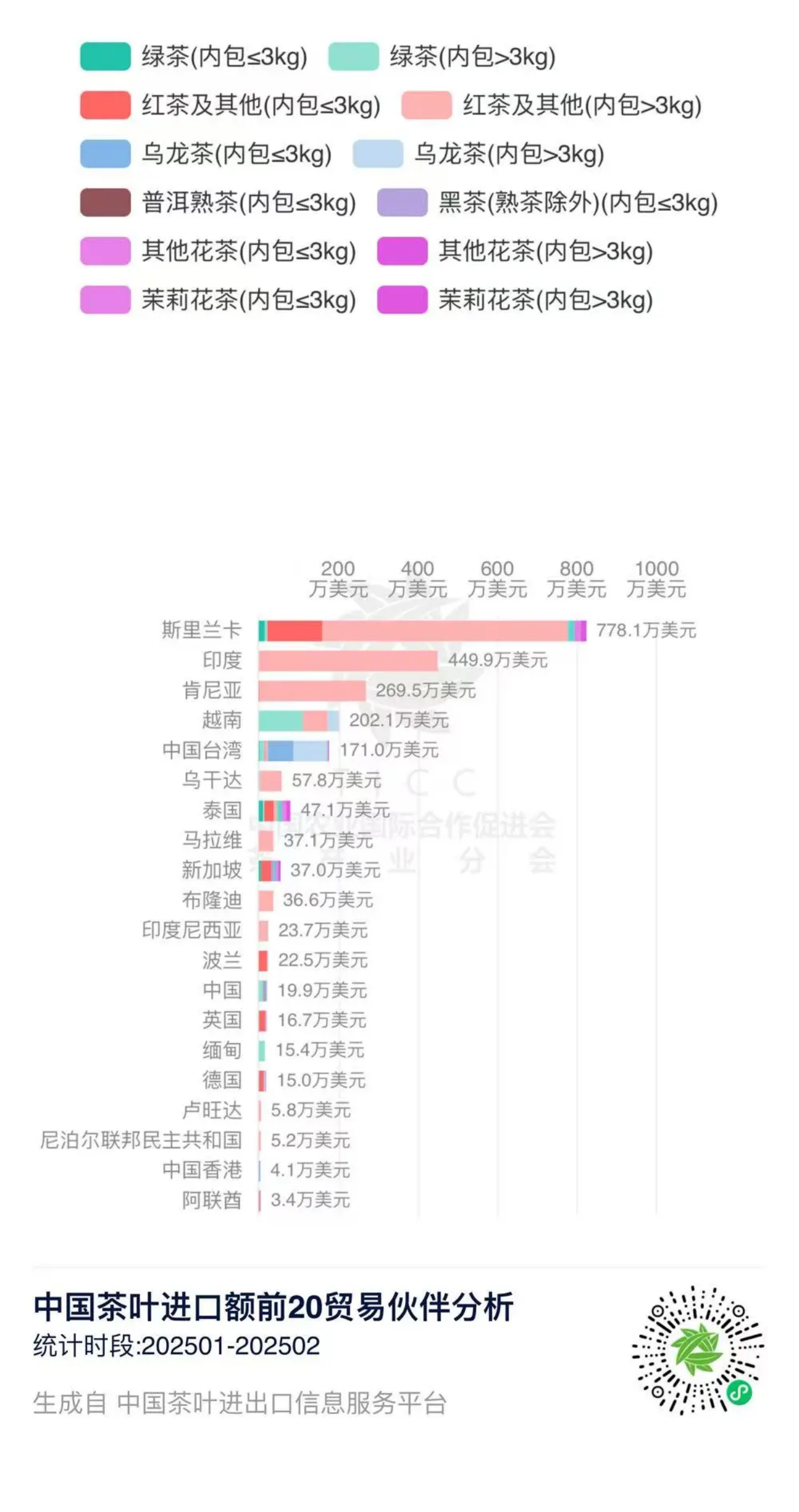 注:2025年1-2月中国茶叶进出口数据由中国农业国际合作促进会茶产业分会整理发布,转载请标明出处。