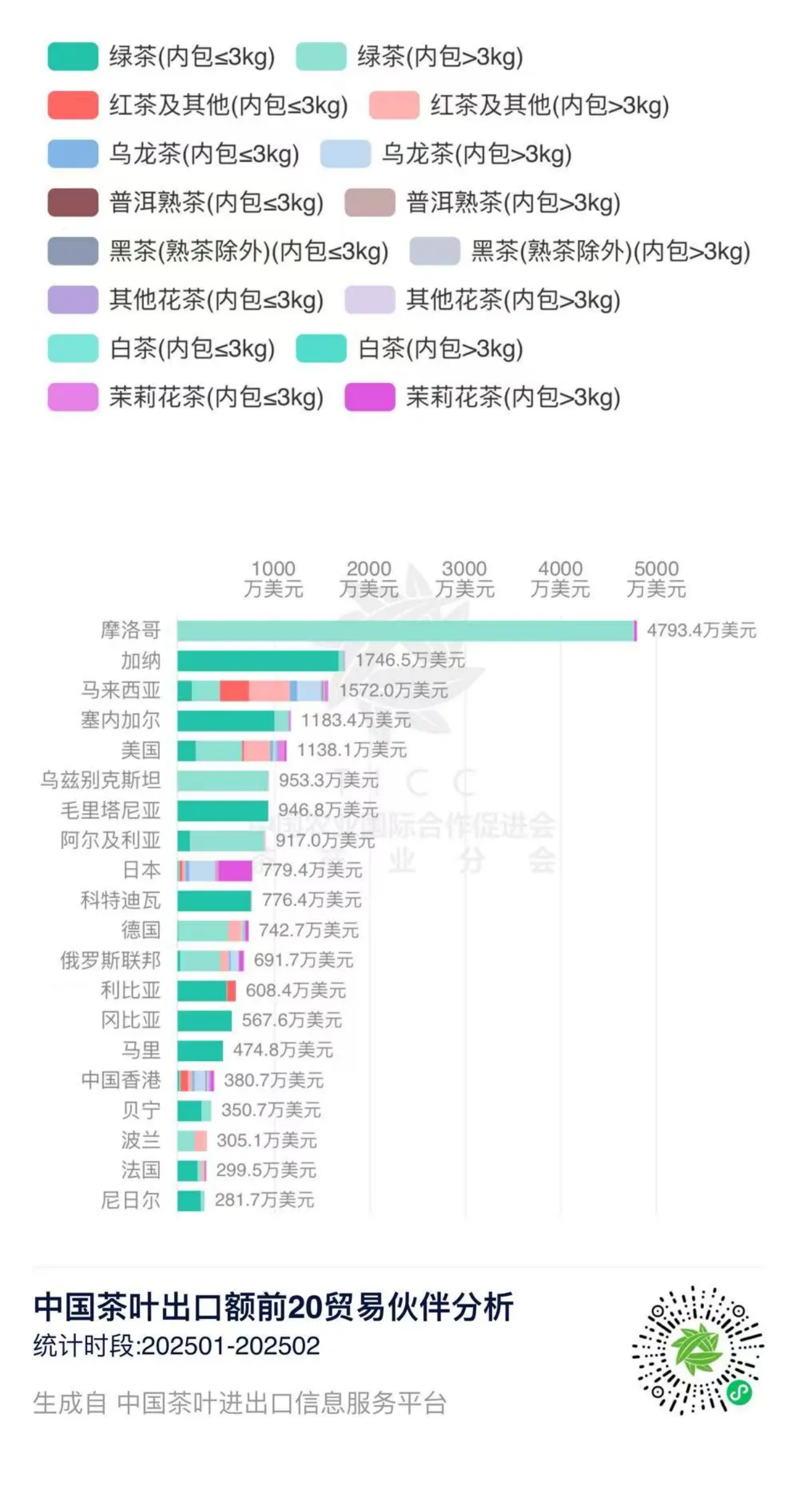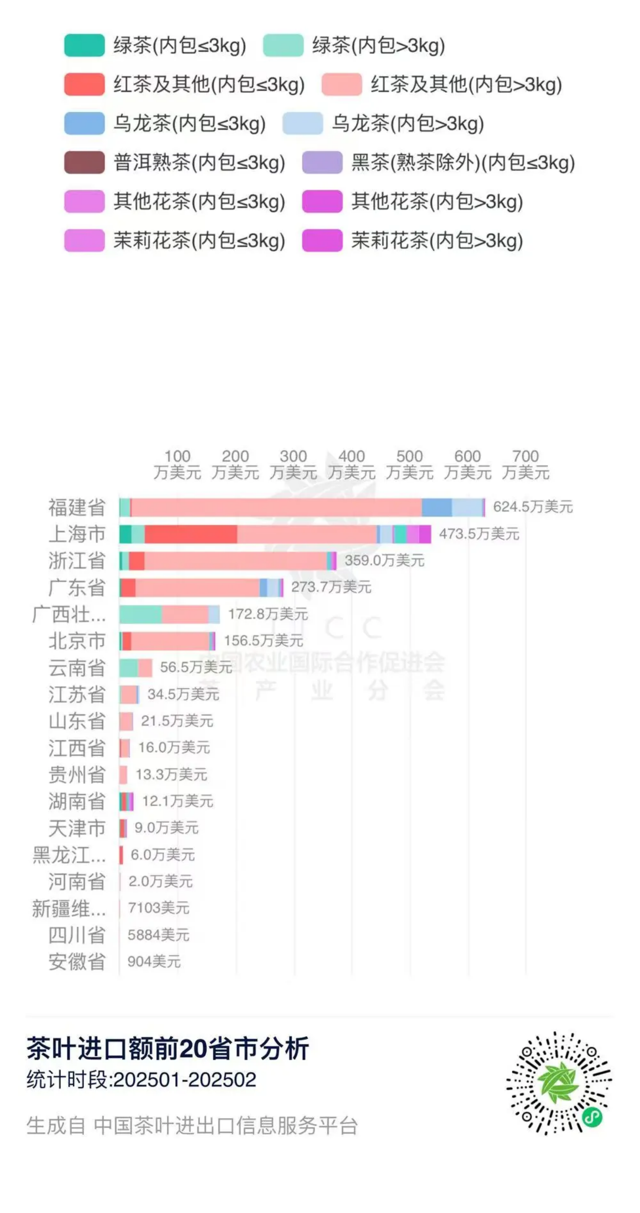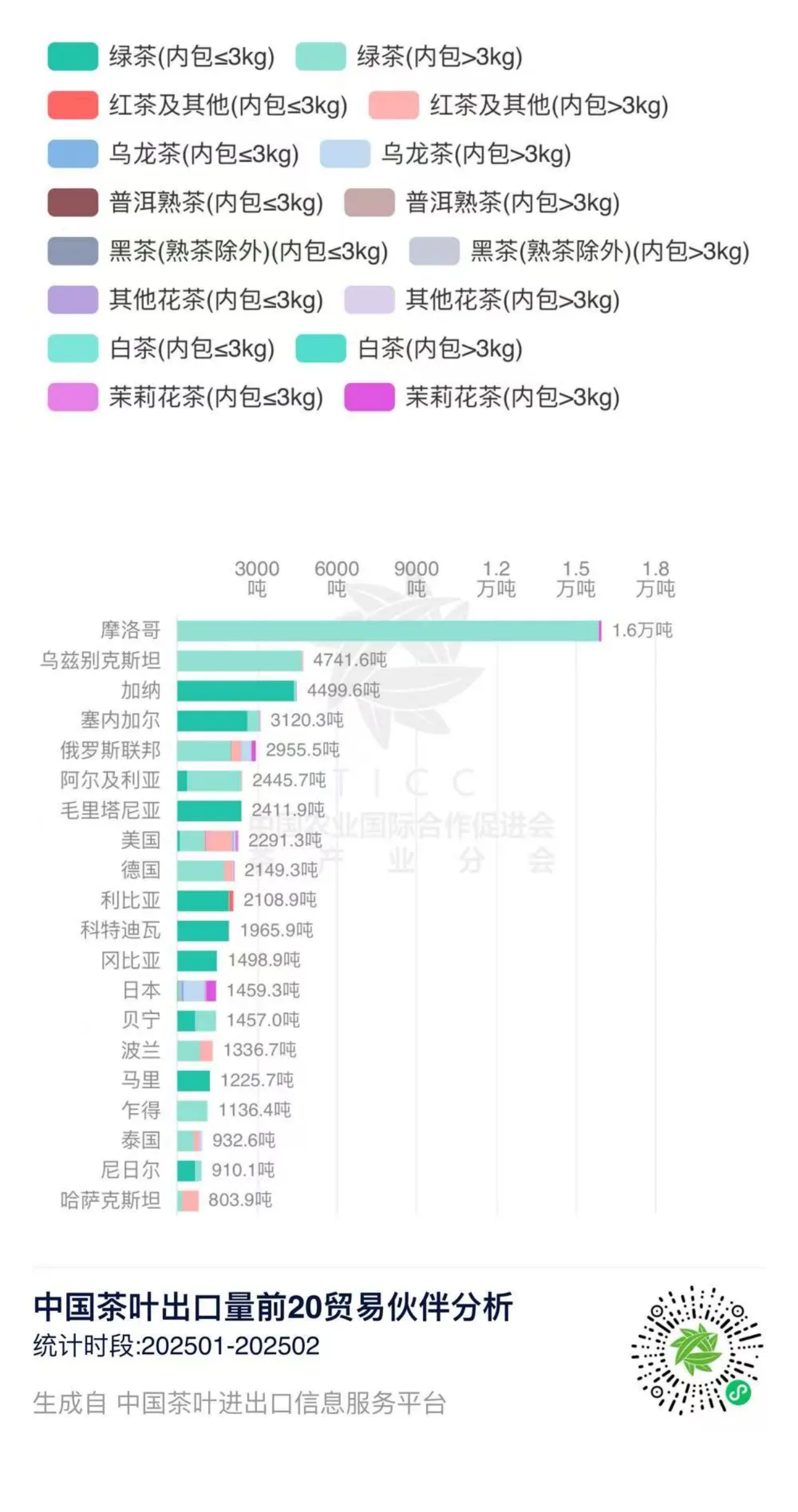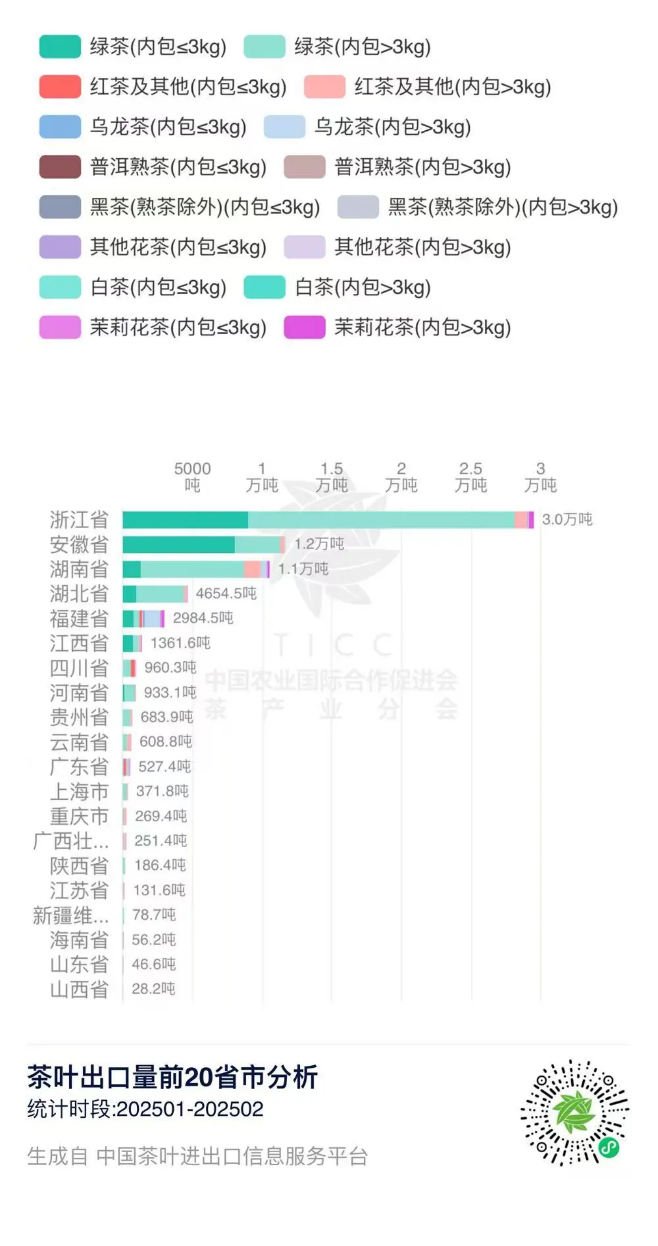 注:2025年1-2月中国茶叶进出口数据由中国农业国际合作促进会茶产业分会整理发布,转载请标明出处。