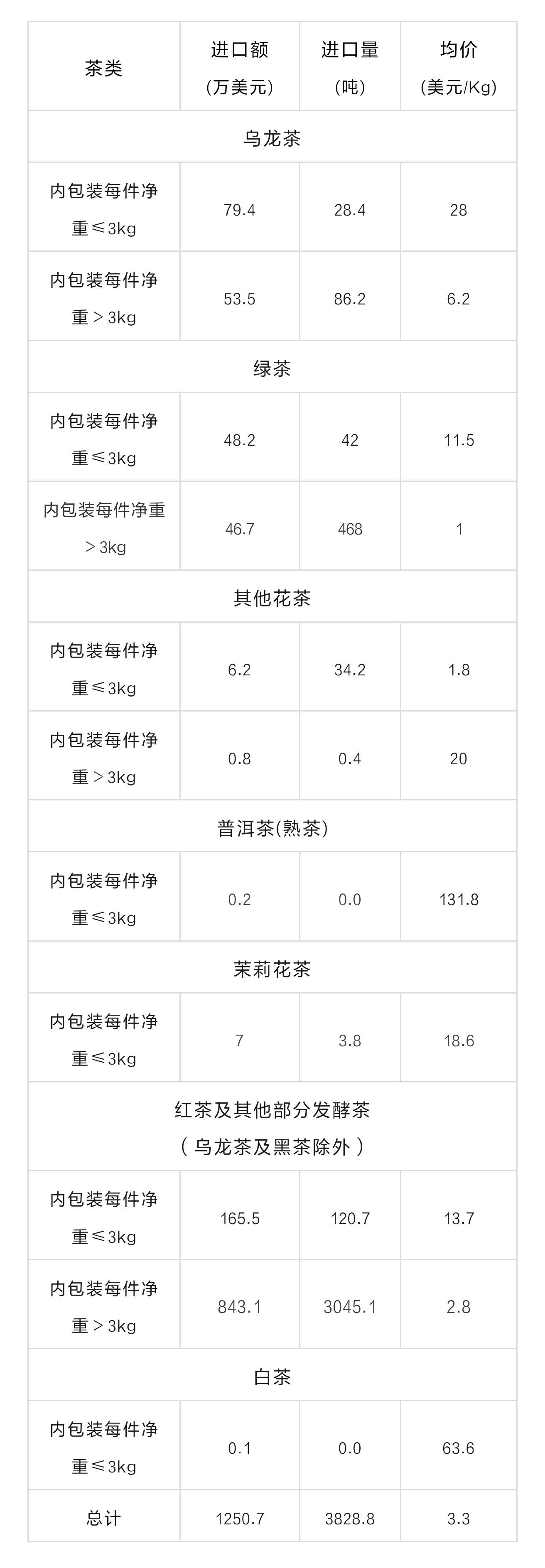 据中国海关数据,2023年8月,中国茶叶进口量为3828.8吨,进口额为1250.7万美元。