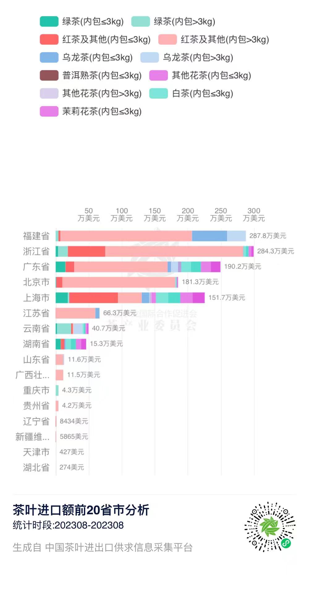 2023年8月中国茶叶分茶类进口数据