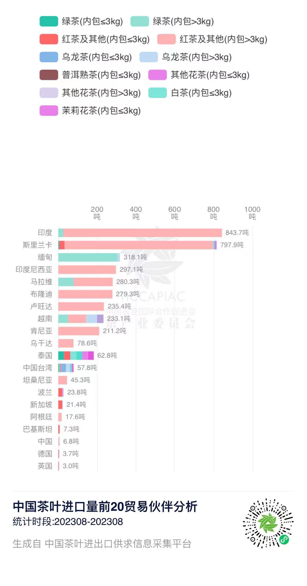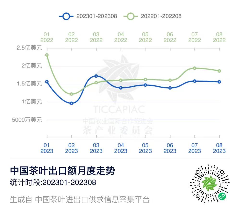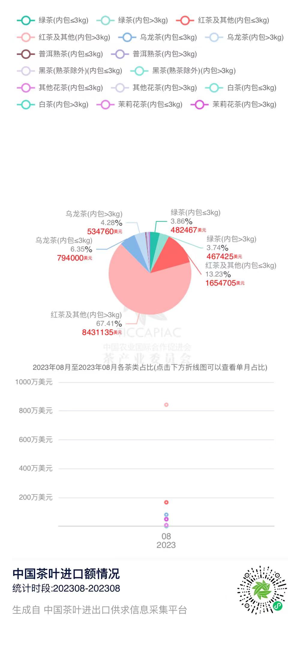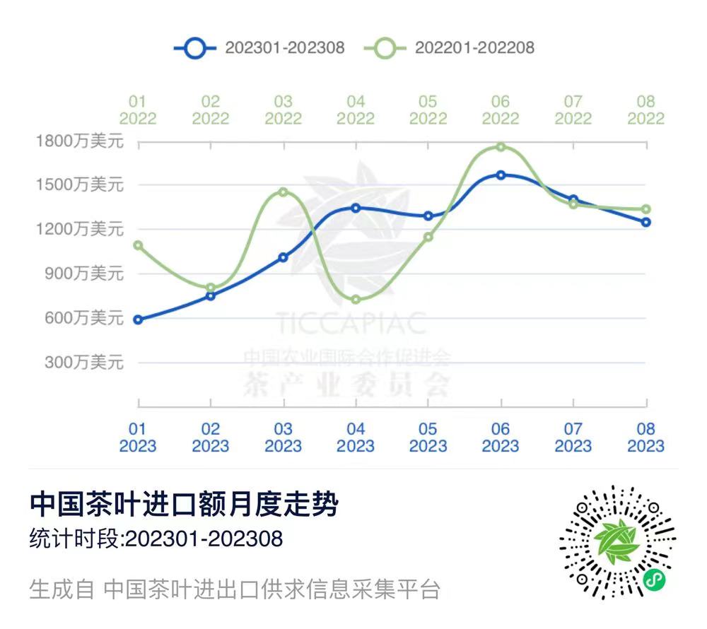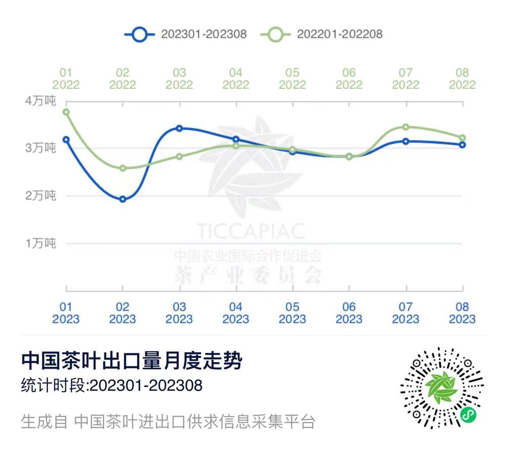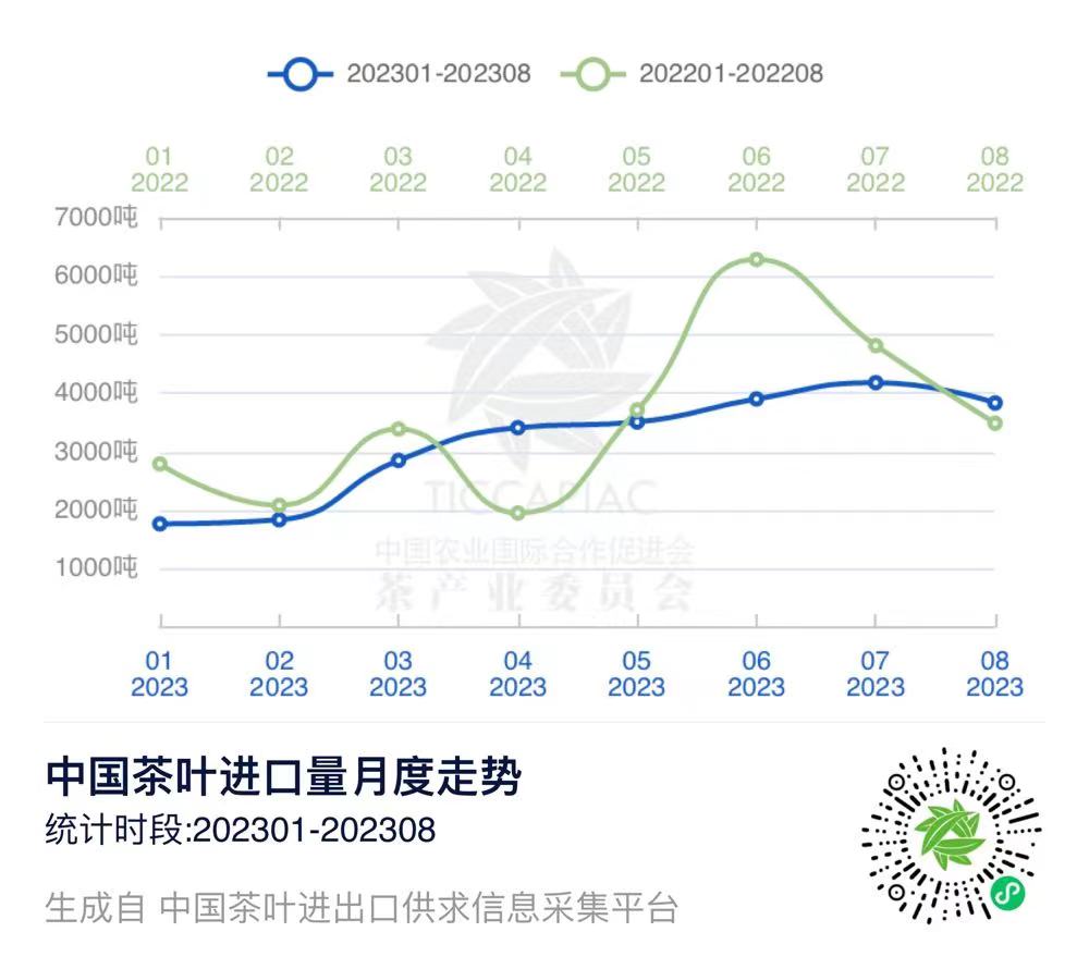 注:2023年8月中国茶叶进出口数据由中国农业国际合作促进会茶产业分会整理发布,转载请标明出处。