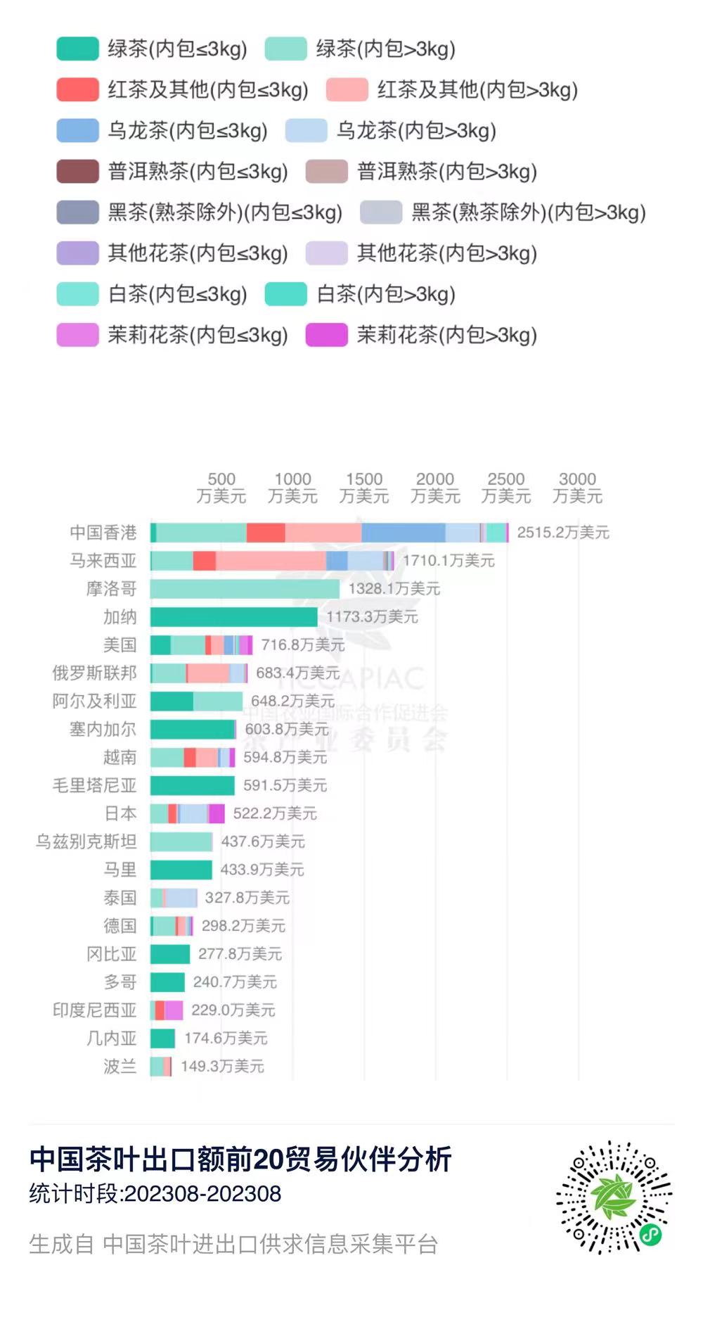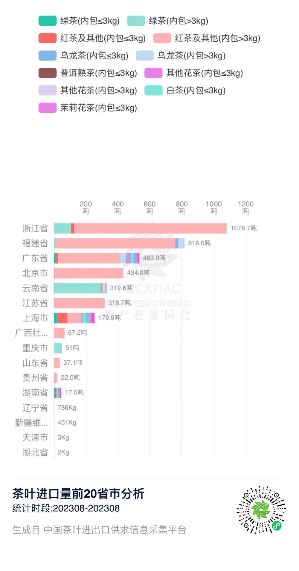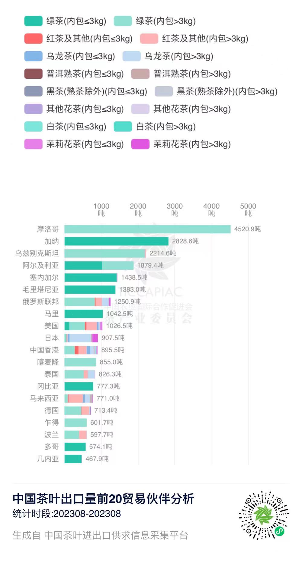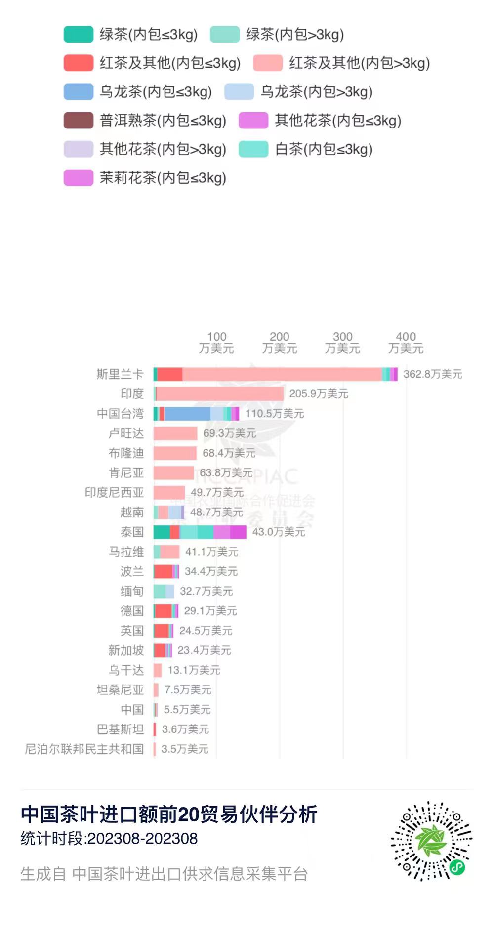 注:2023年8月中国茶叶进出口数据由中国农业国际合作促进会茶产业分会整理发布,转载请标明出处。