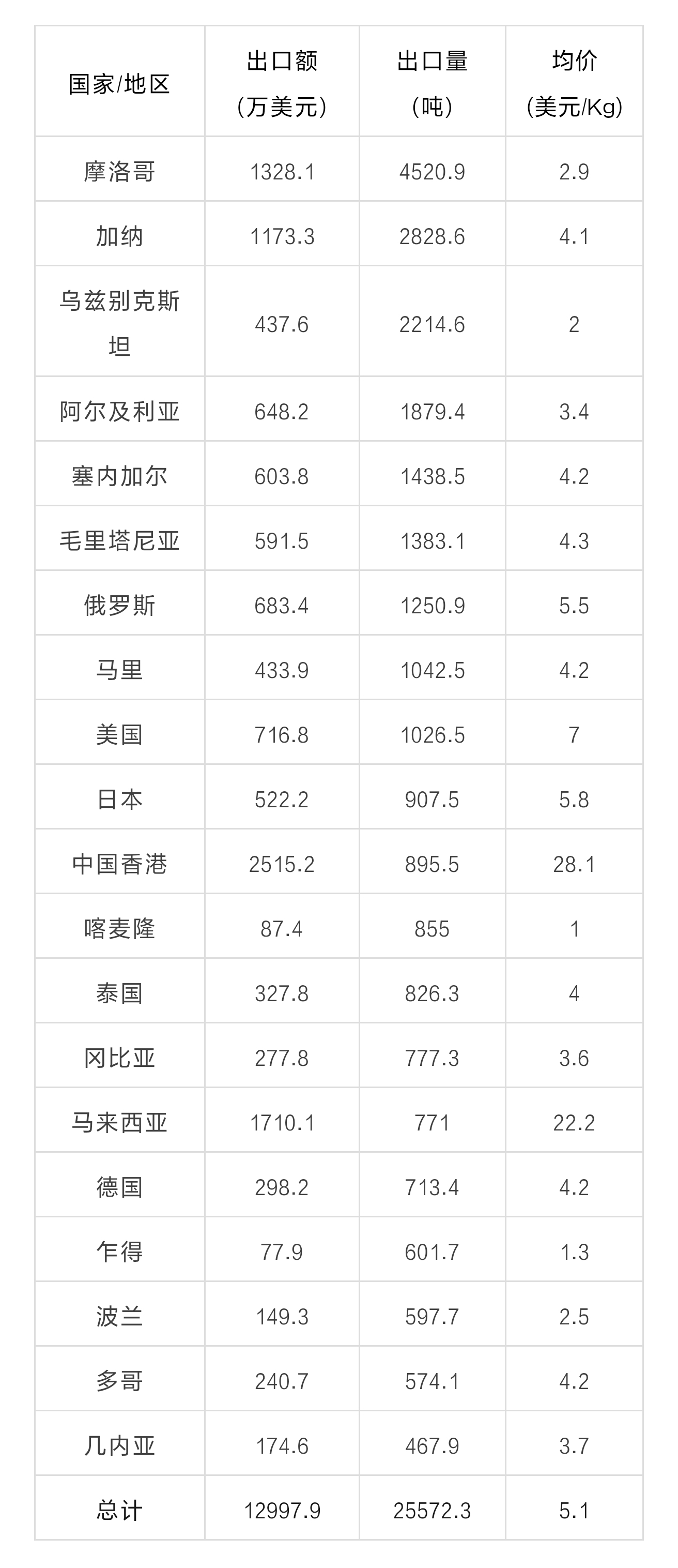 2023年8月中国茶叶主要外销国家/地区