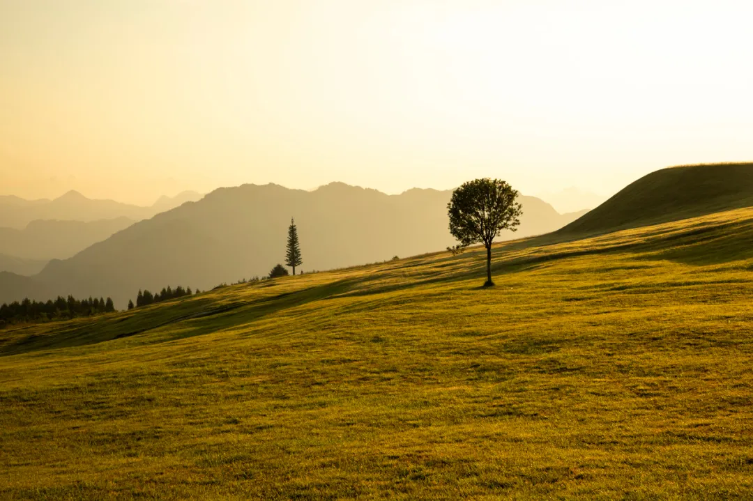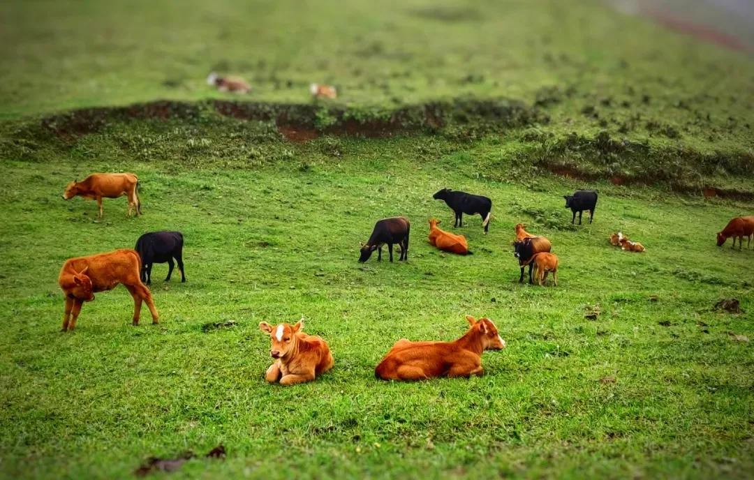 它的美,不在于一马平川的无垠,而在于那连绵起伏的丘陵,如同大地的波浪,悠然起伏。在这绿色的海洋中,几只可爱的山羊点缀其间,仿佛是点缀在绿色画布上的珍珠,为这片草原增添了几分生动与活力。