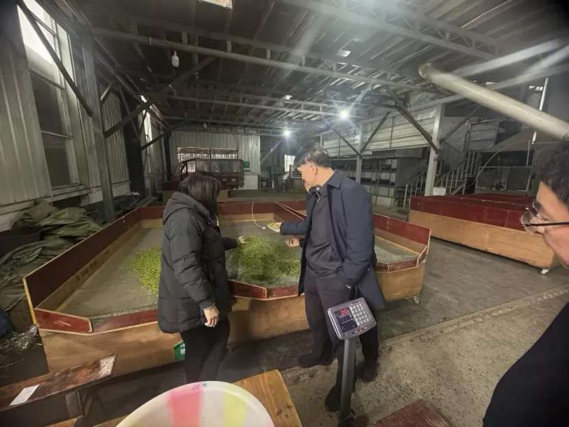 图:魏有秘书长现场查看茶叶加工情况