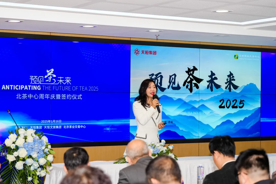 活动中,北茶中心总经理李琼代表北茶中心发表“2025预见茶未来”主题演讲,回顾了北茶中心2024年的奋斗历程,并表示,2025年北茶中心将以“中国数据街”建设为引擎,茶业交易为根基,数字经济为支撑,文化自信为底蕴,金融服务为驱动,赋能上线茶企,为茶产业交易带来新活力。