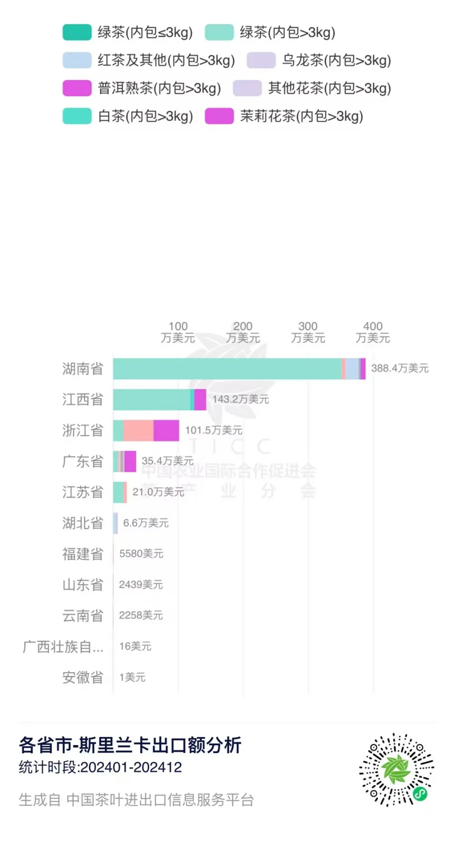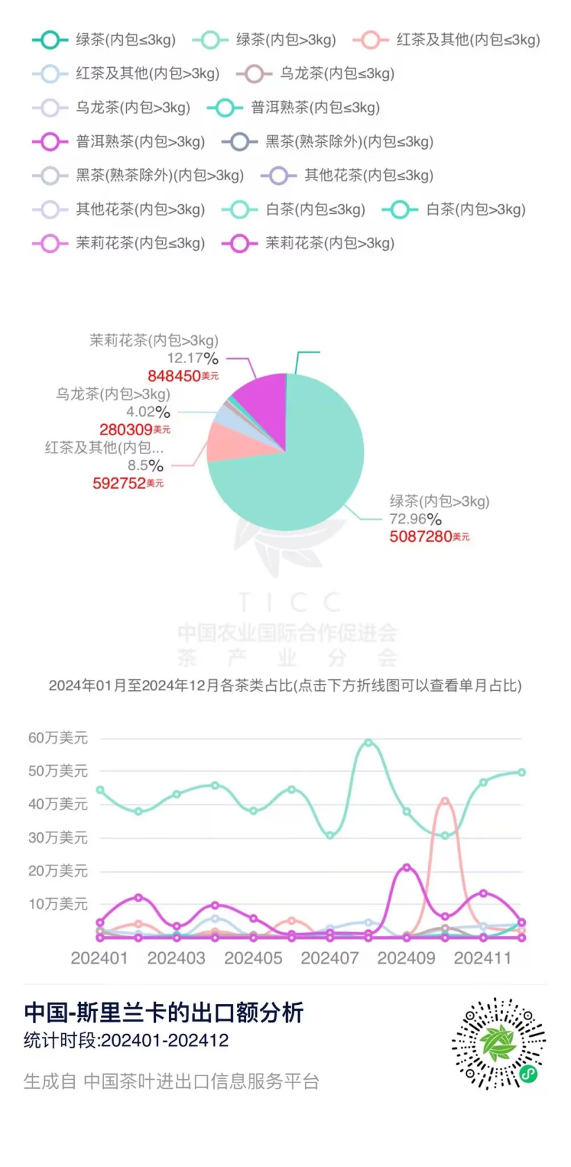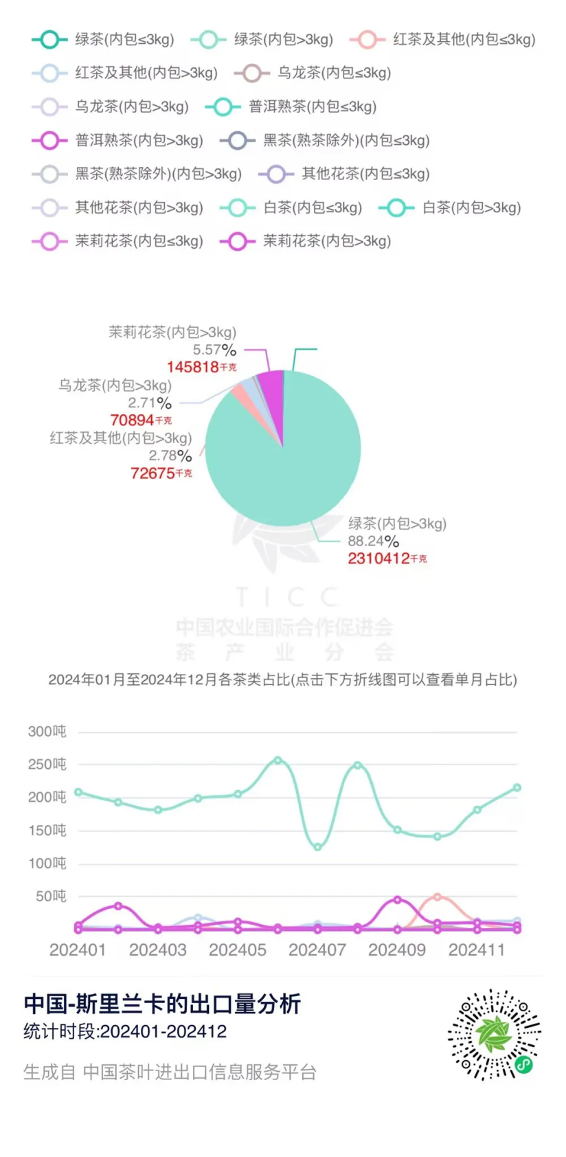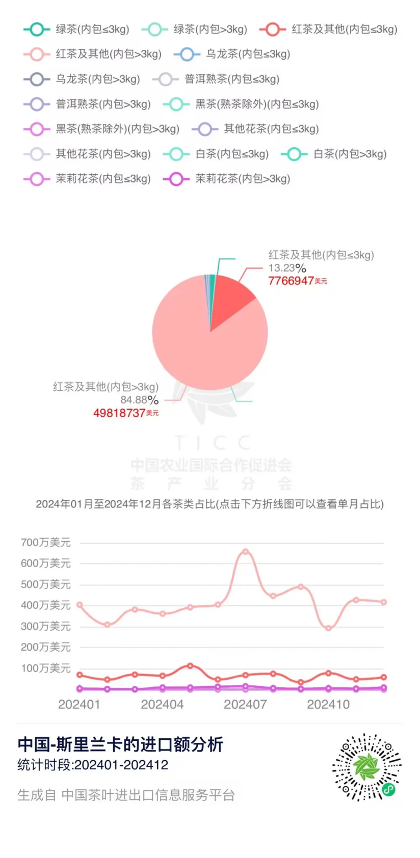 在“中国茶叶进出口信息服务平台”上,我们可以查询到2024年1-12月中国与斯里兰卡的茶叶进出口贸易数据。