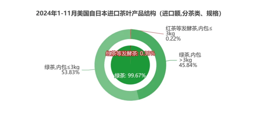 从进口额看,绿茶进口额9833.14万美元,占茶叶进口总额的99.67%;红茶等发酵茶进口额32.23万美元,占0.33%。