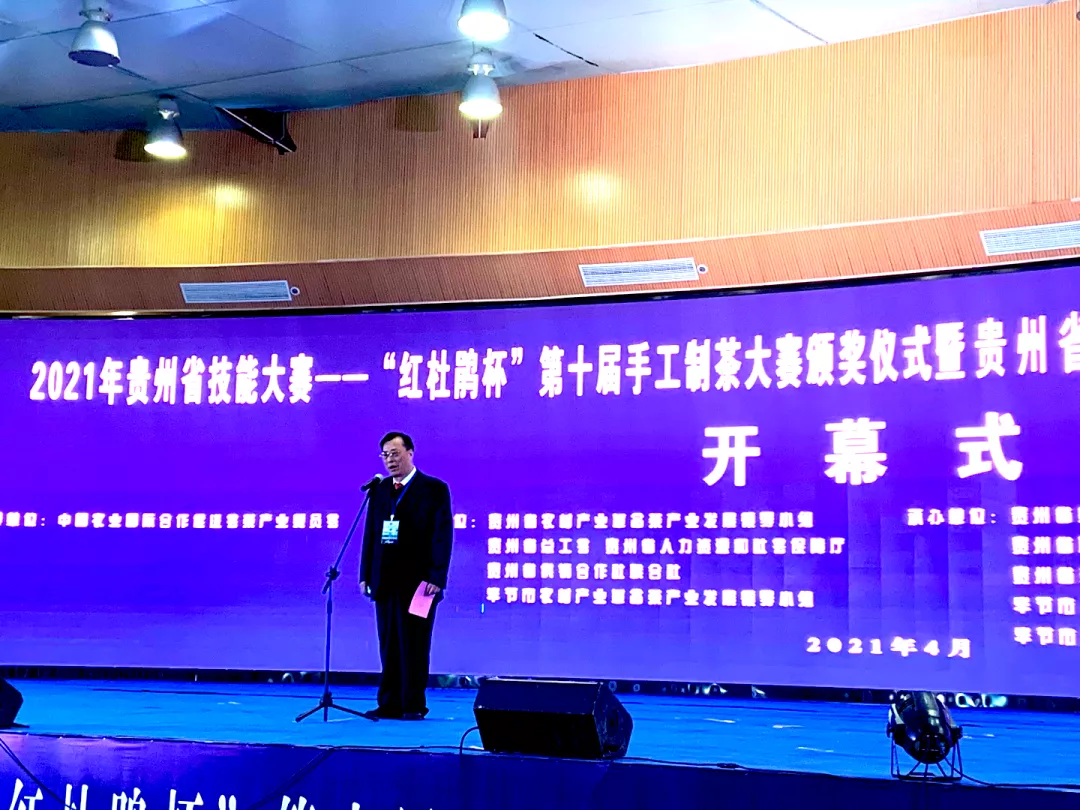 4月18日,由我会指导,贵州省农村产业革命茶产业发展领导小组、贵州省总工会、毕节市农村产业革命茶产业发展领导小组等单位主办,贵州省茶叶协会、毕节市委宣传部、毕节市农业农村局承办的2021年贵州省技能大赛—“红杜娟杯”第十届手工制茶大赛颁奖仪式暨贵州省第十三届茶产业博览会毕节茶旅融合活动在毕节百里杜鹃管理区举办。