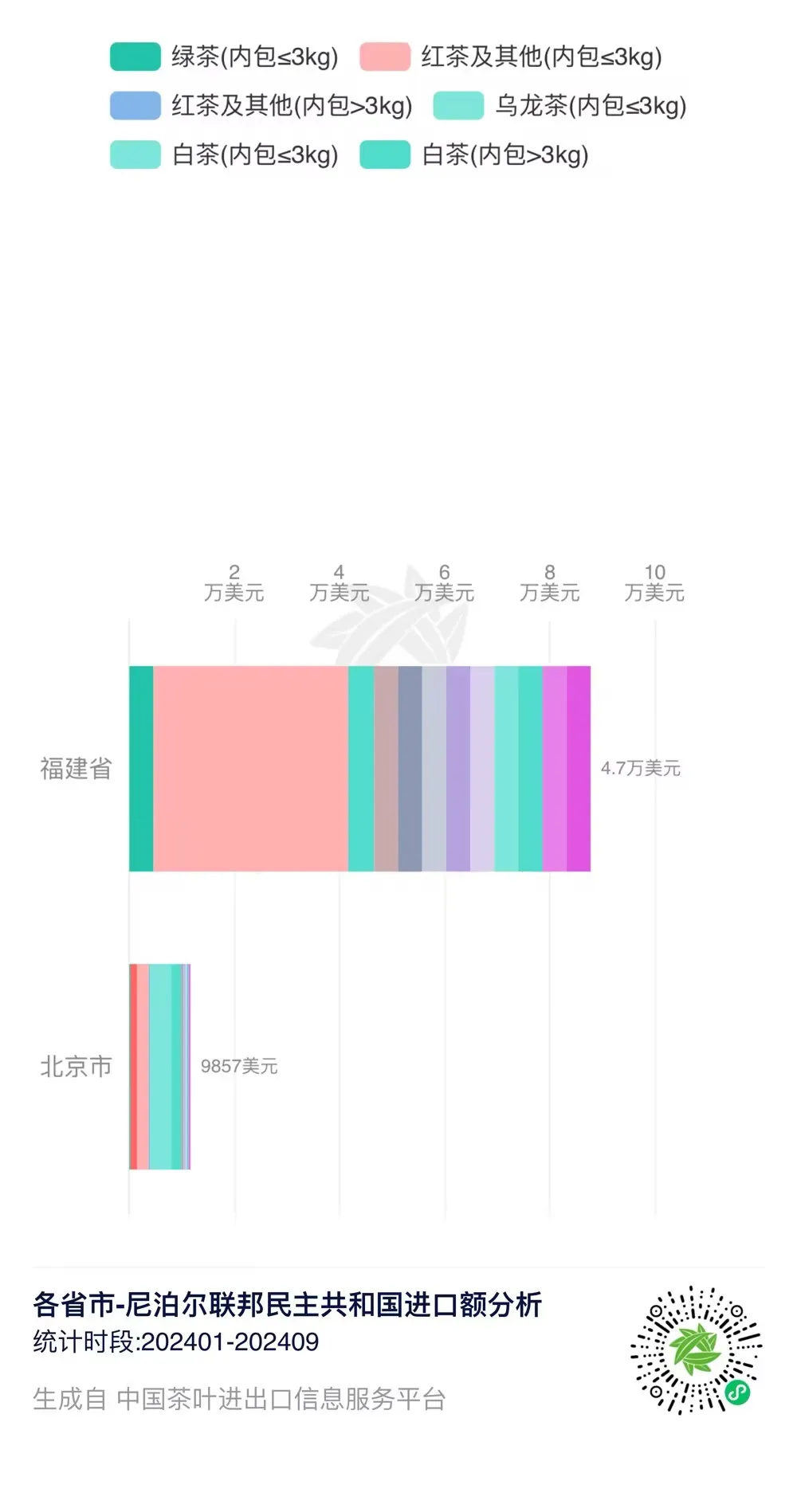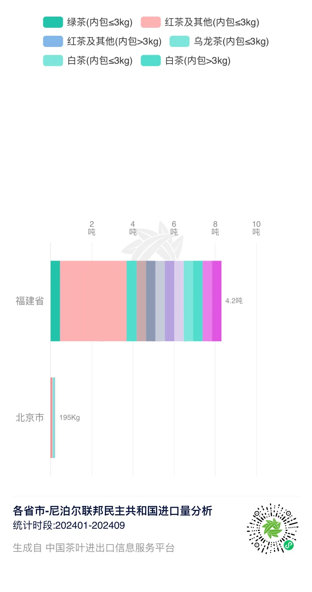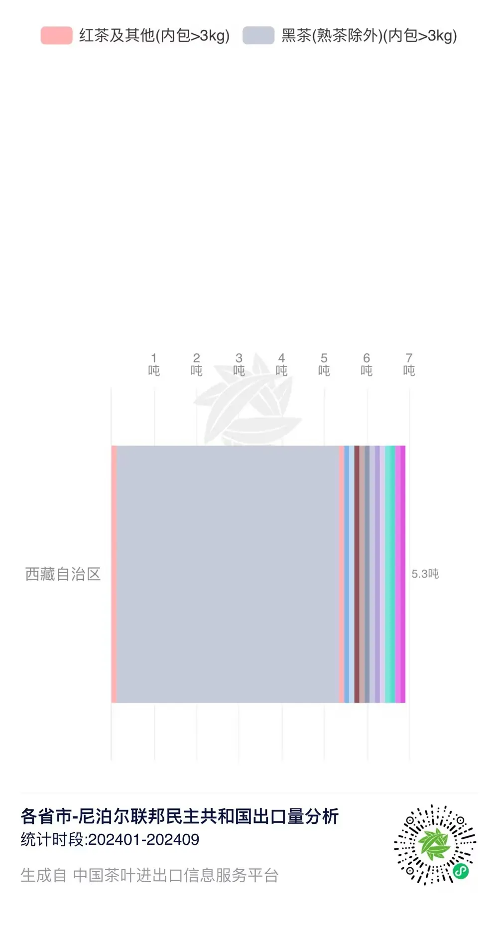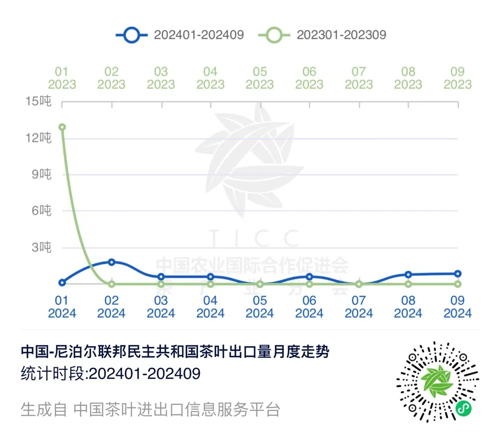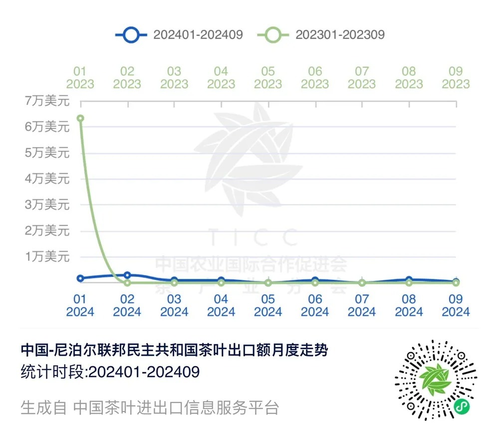 在“中国茶叶进出口信息服务平台”上,我们可以查询到2024年1-9月中国与尼泊尔的茶叶进出口贸易数据。