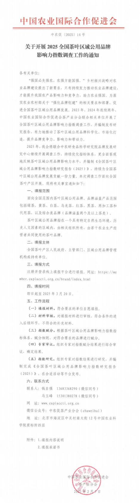 2025全国茶叶区域公用品牌影响力指数调查填报内容说明