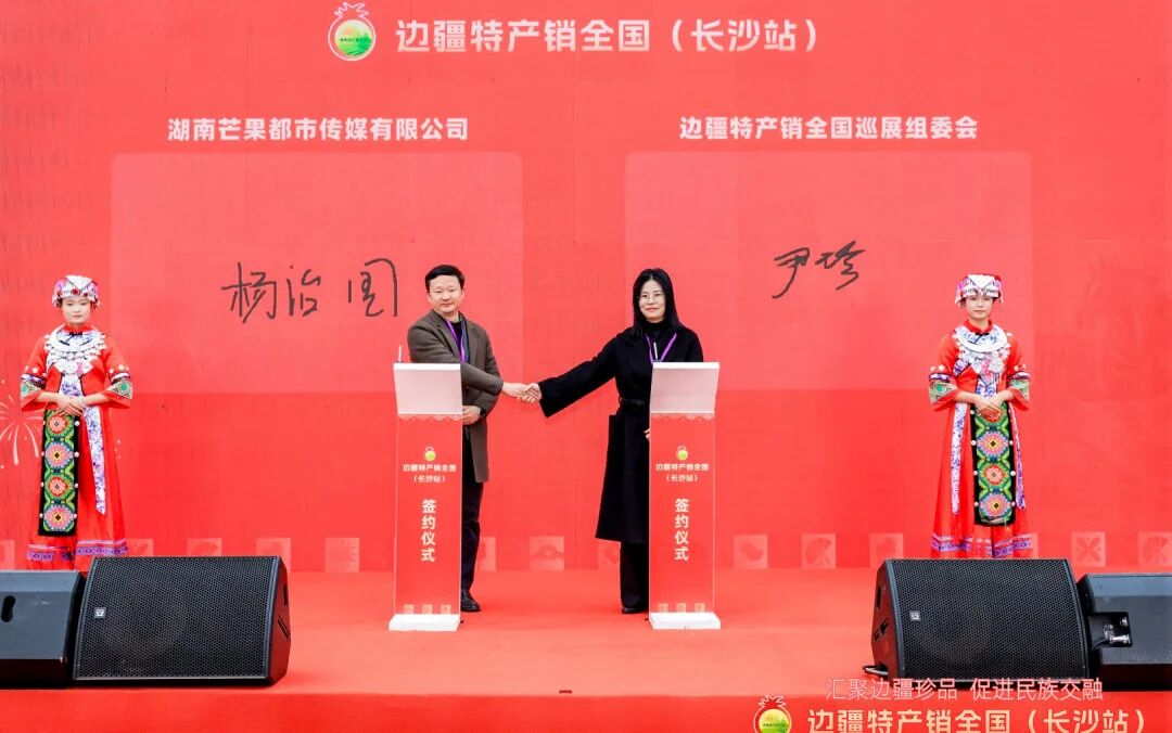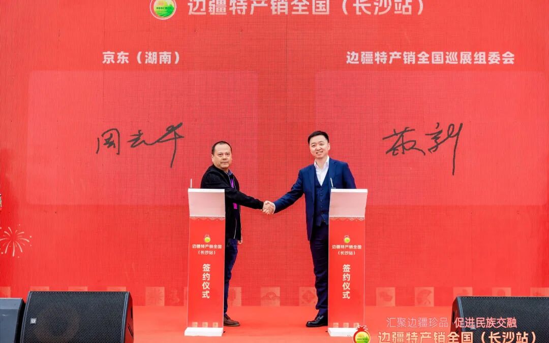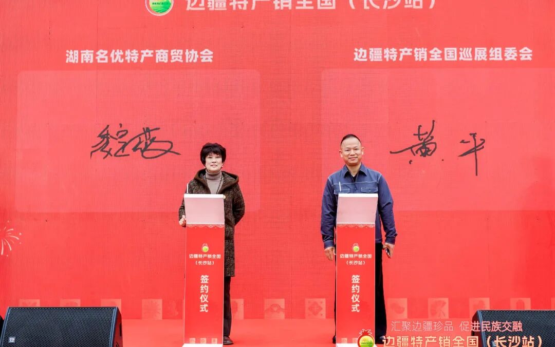 开幕式上,中国民族经济开发有限公司总经理任京广先生致辞,边疆特产销全国巡展组委会代表苏新先生发言,边疆特产销全国展销中心吴迪先生进行特产推介。还举行了多项签约仪式,包括湖南广电都市频道与组委会的宣传合作、组委会与湖南省名优特产商贸协会采购合作以及组委会与京东(南)线上合作签约,为建立长效合作机制奠定基础。