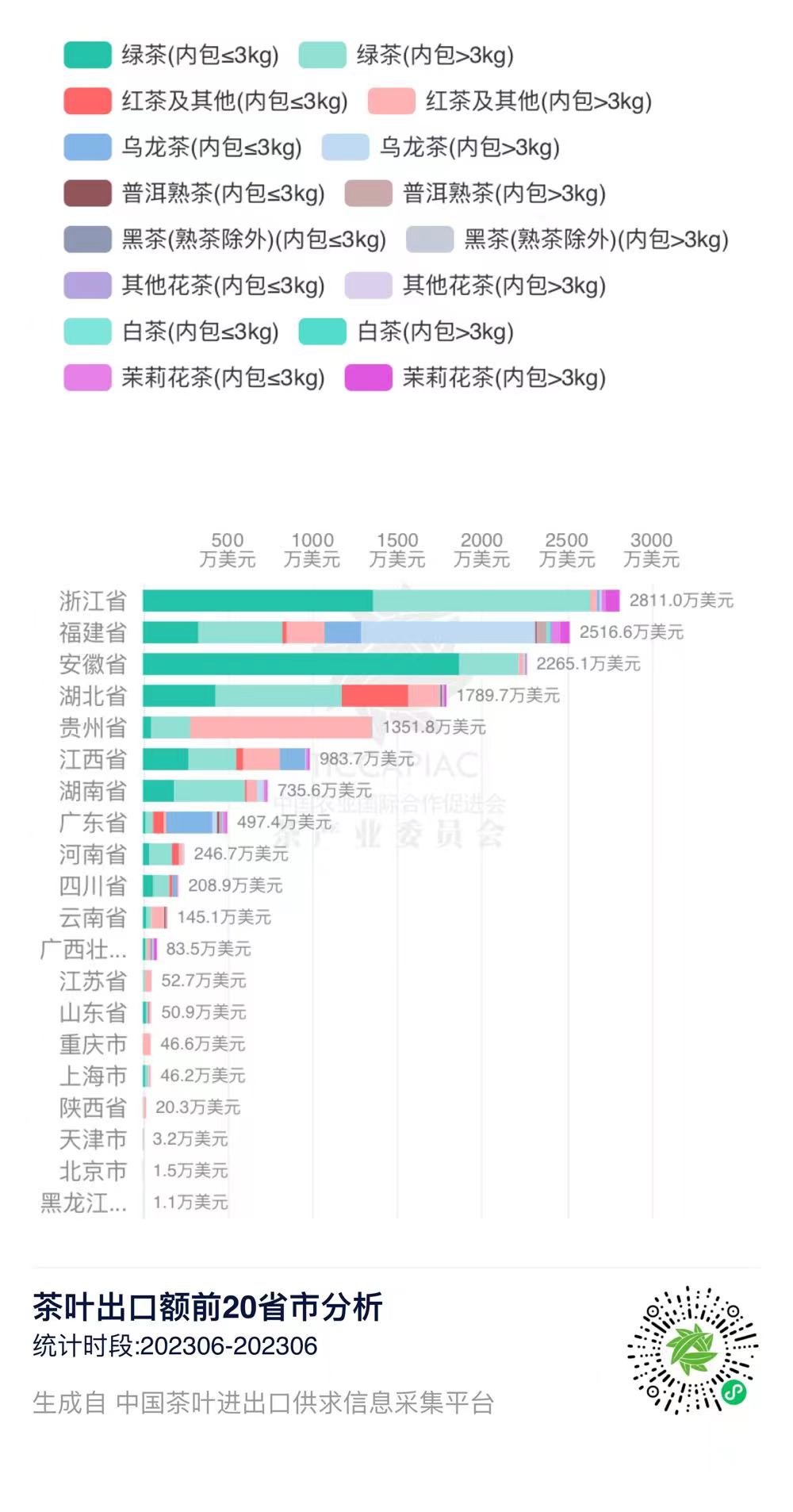 2023年6月中国茶叶出口量前20省市