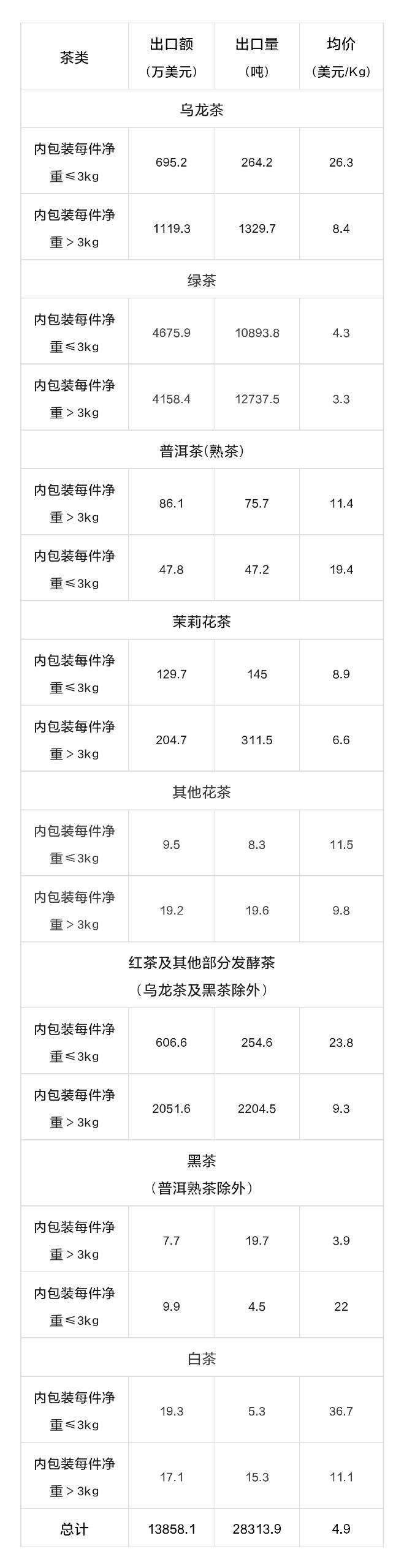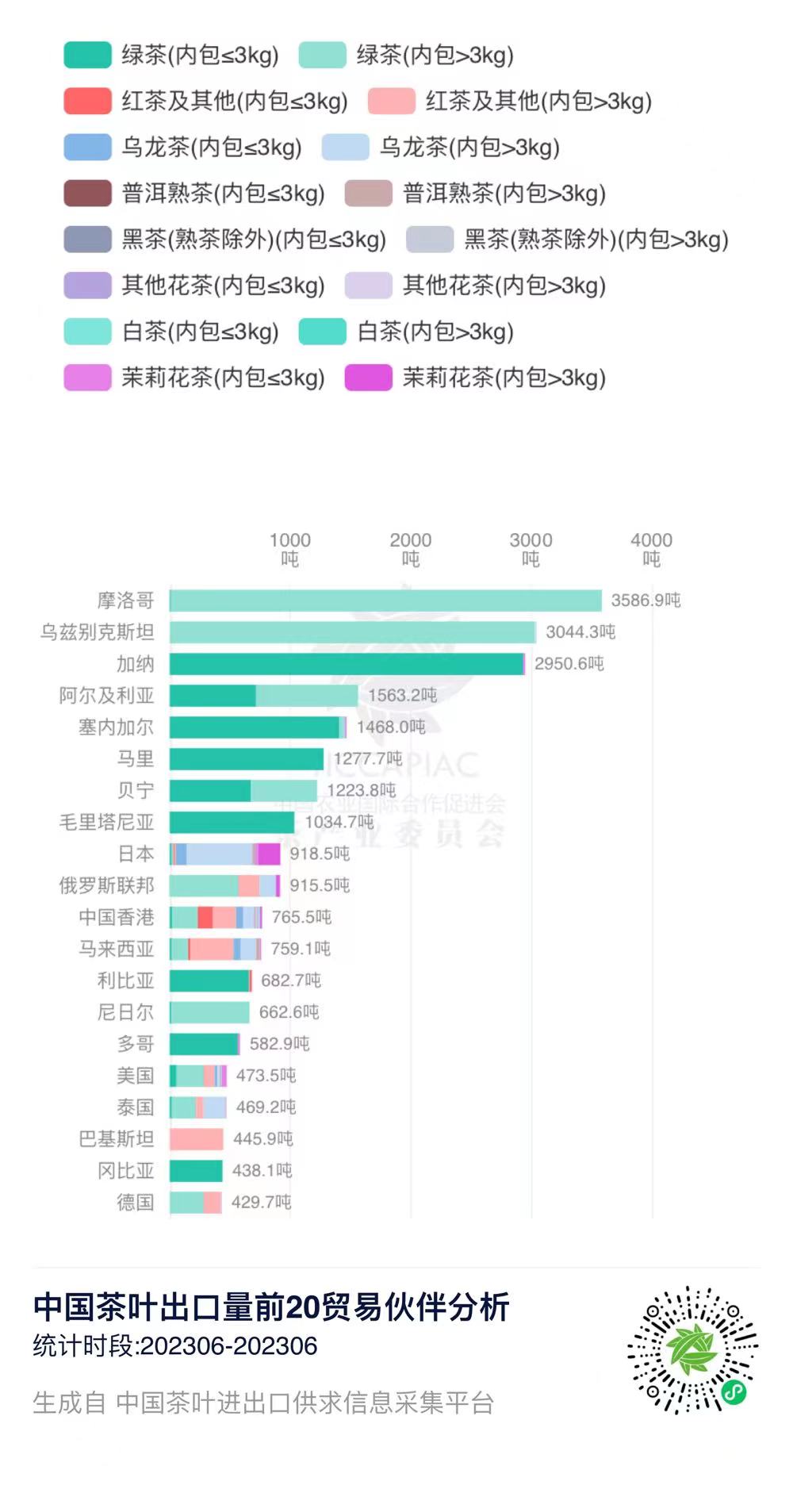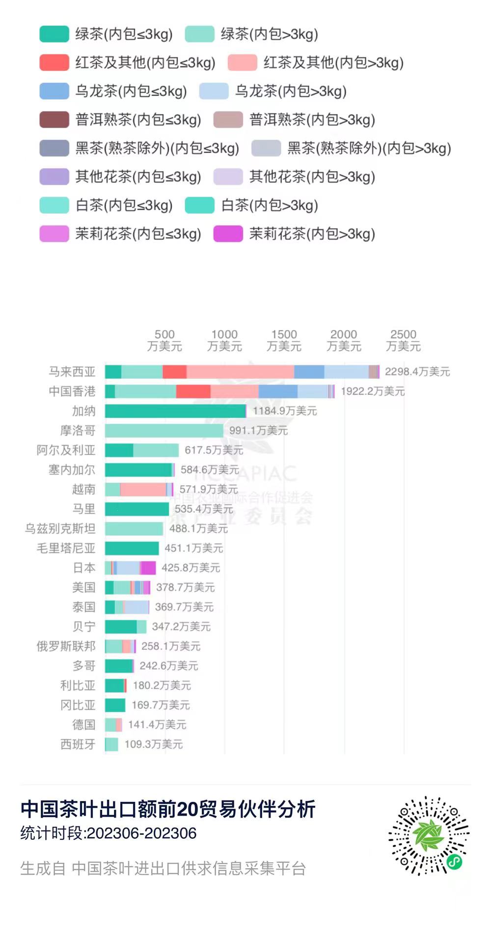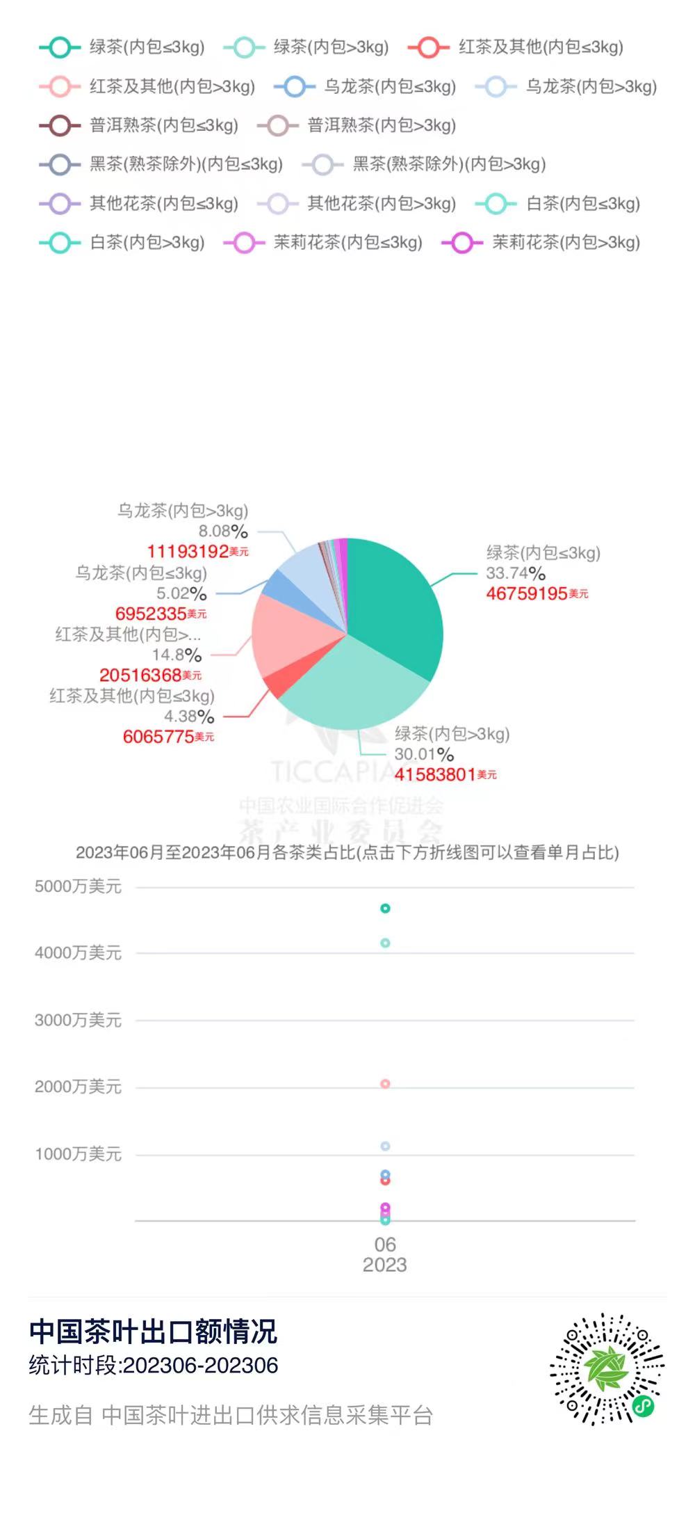 2023年6月中国茶叶分茶类出口数据