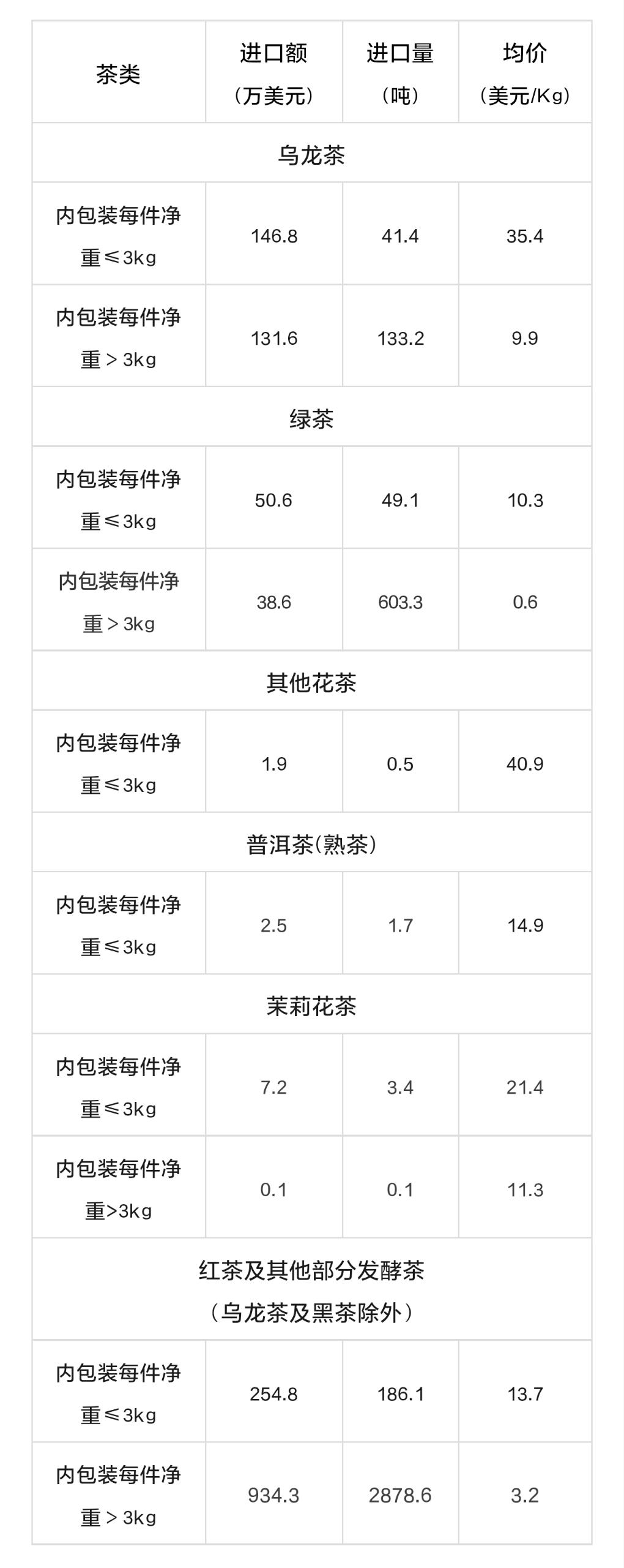 2023年6月中国茶叶分茶类进口数据