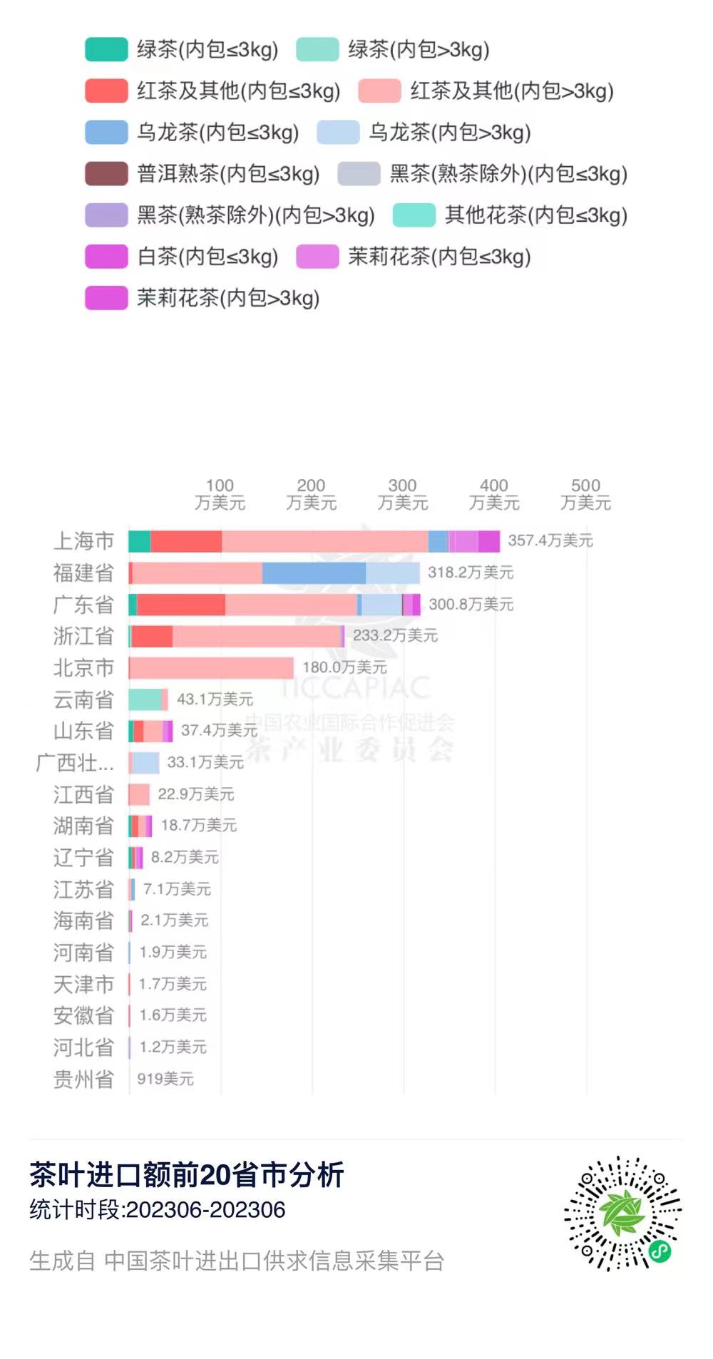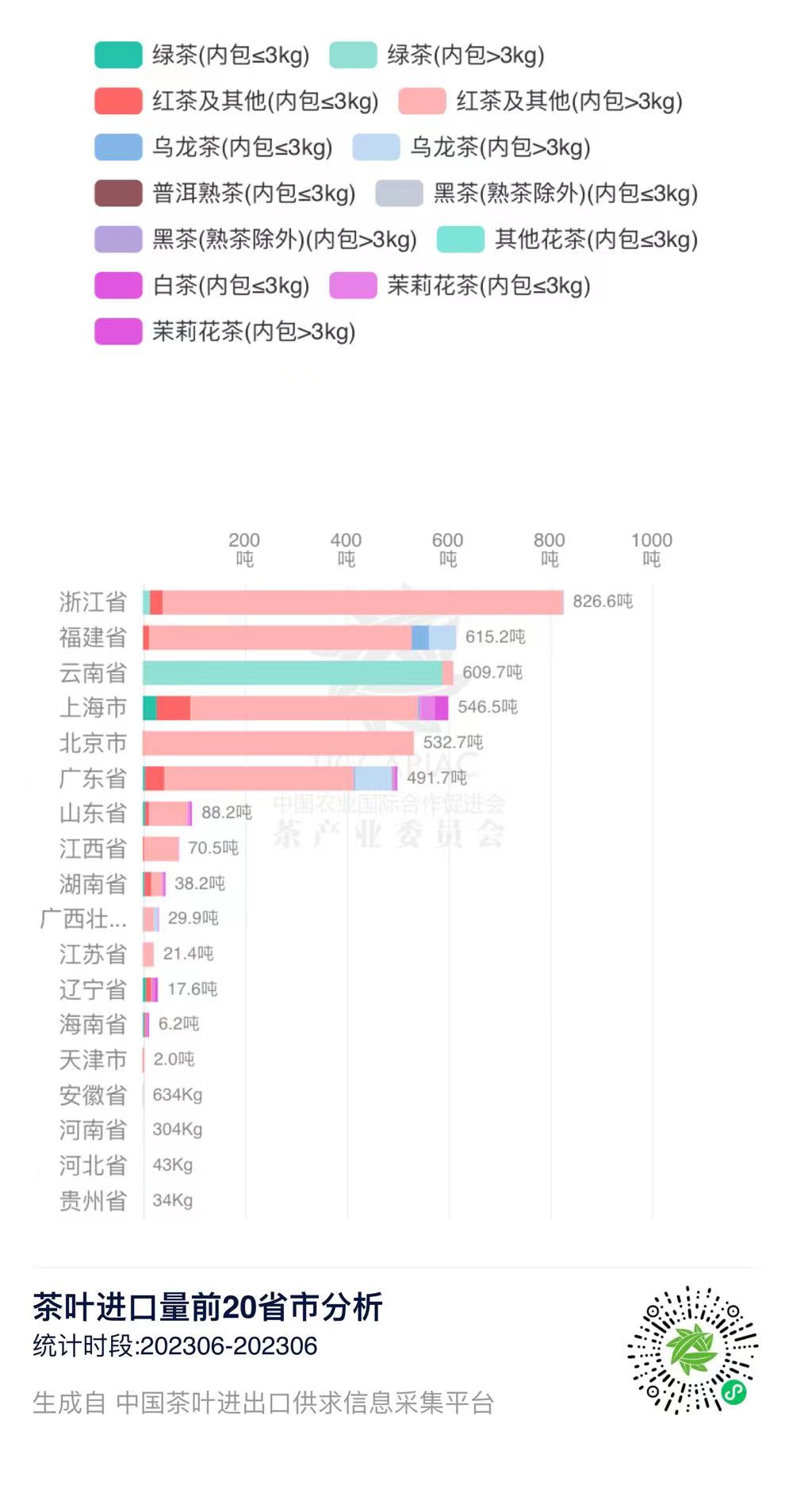 2023年6月中国茶叶进口量前20省市