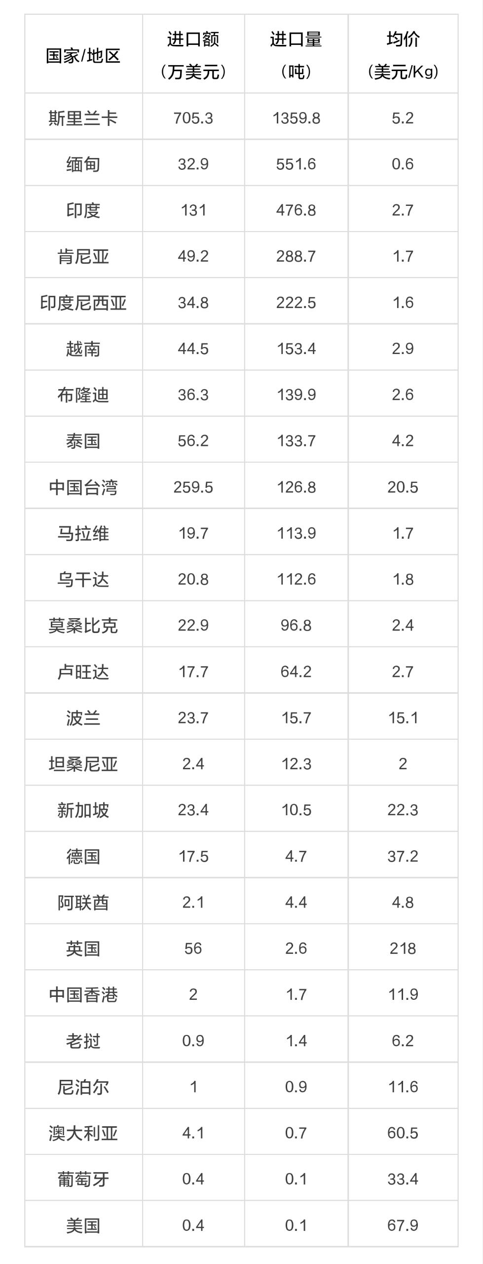数据丨2023年6月中国茶叶进出口数据