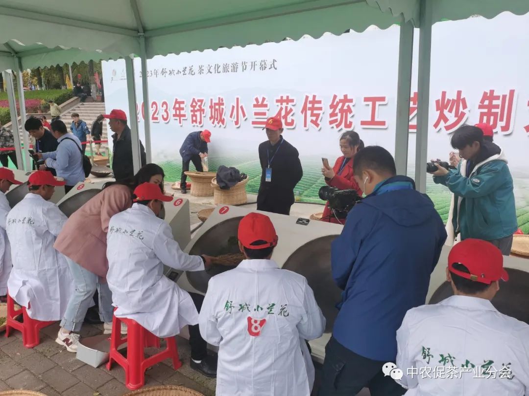 △开幕式现场,同时举办了“舒城小兰花”茶叶炒制大赛、舒城小兰花茶产品和舒城旅游产品集中展示、茶园观光和全民饮茶等活动。